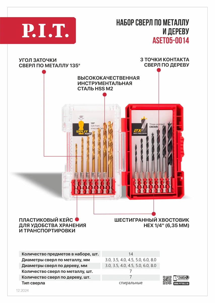 Набор свёрл по металлу и дереву ASET05-0014 серии DRUA содержит 14 спиральных сверл (7 по металлу и 7 по дереву) самых востребованных диаметров. Шестигранный хвостовик 1/4"(6,35мм) дает возможность использовать эти сверла с шуруповертами.