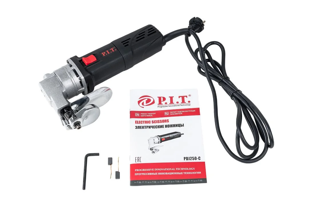 Резка металла без трудностней с электрическими ножницами PDJ250-C. Они обеспечивают точную, быструю и аккуратную резку, при этом удобно лежат в руке и обладают небольшим весом. Преимущества: • Простота управления - переключатель с фиксацией во включенном положении • Безопасность - специальная пластина, которая защищает руку оператора при работе • Надежный металлический корпус редуктора • Высокая скорость резки благодаря мощному двигателю Применение: для резки листов металла