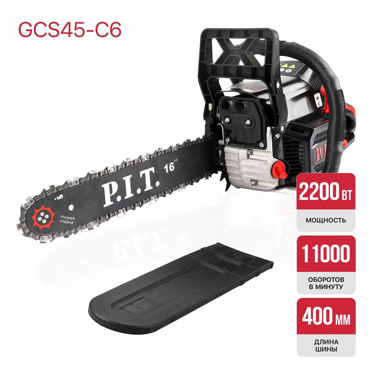 Бензопила GCS45-C6 мощная и производительная пила, отличный помощник в деревне, на даче, садовом или приусадебном участке. Поможет заготовить дрова, спилить ненужные деревья и ветки, подготовить материалы для строительства. Мощный бензиновый двигатель обеспечивает мобильность и независим от стационарных источников питания. Для удобства и безопасности пользователя пила оснащена защитным щитком, механическим тормозом, удобными основной и дополнительной рукоятками и антивибрационной системой.