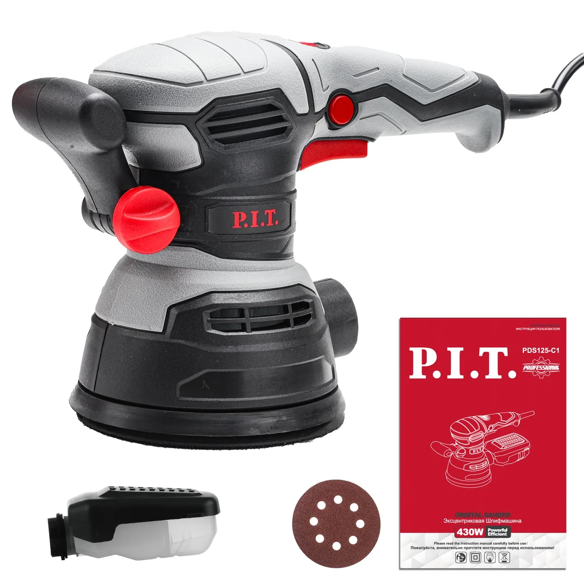 Шлифмашина эксцентриковая, коробка, круг шлифовальный, пылесборник, инструкция по эксплуатации