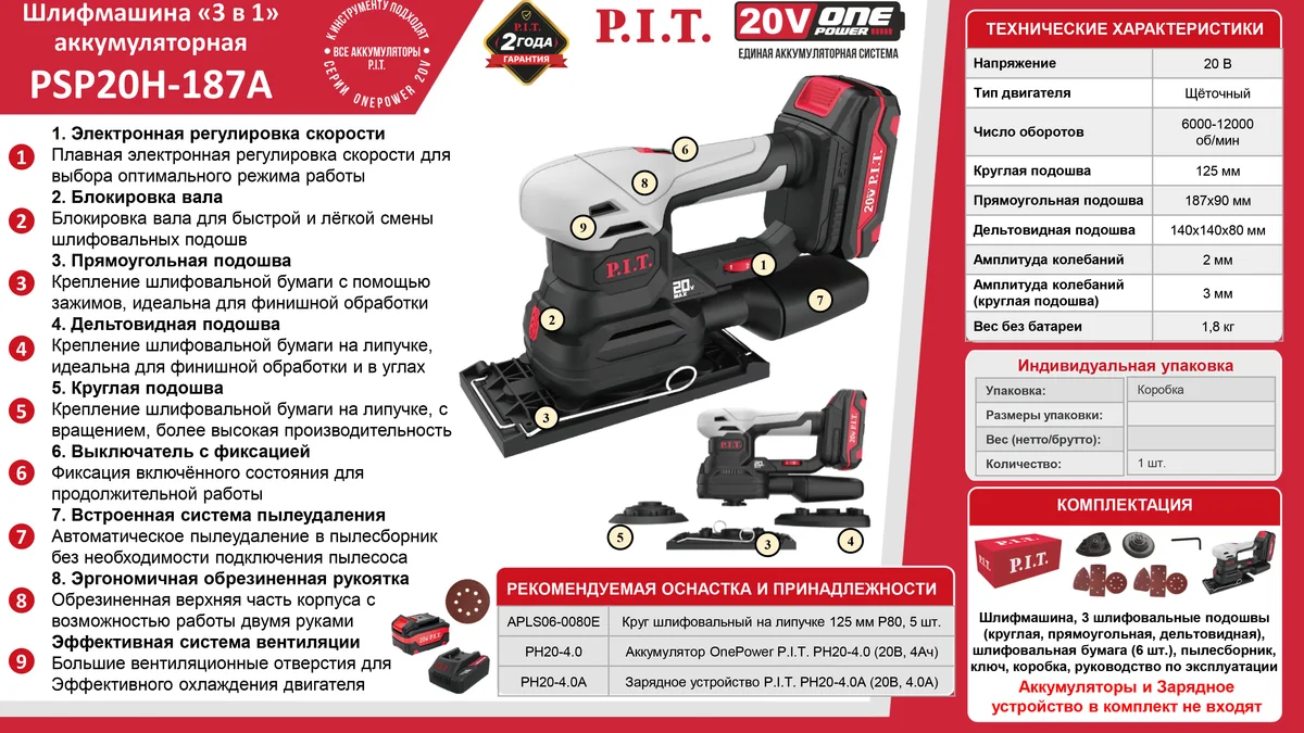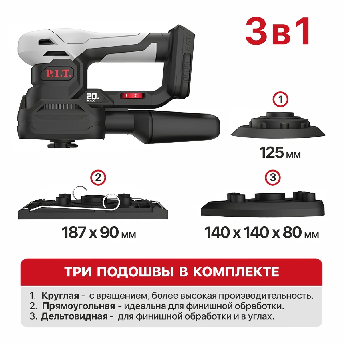 Шлифмашина многофункциональная аккумуляторная P.I.T. PSP20H-187A SOLO