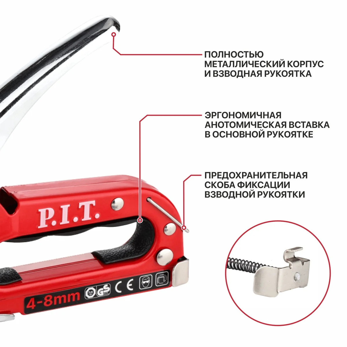 - Предохранительная скоба фиксации взводной рукоятки для удобства хранения и транспортировки