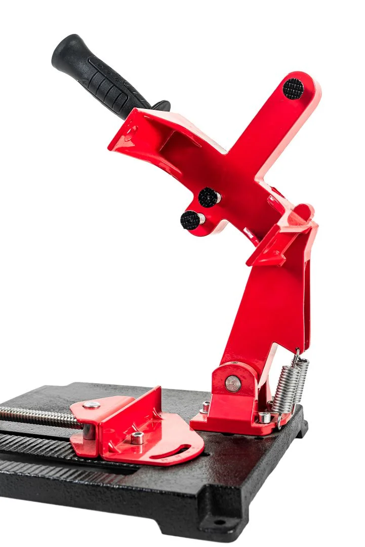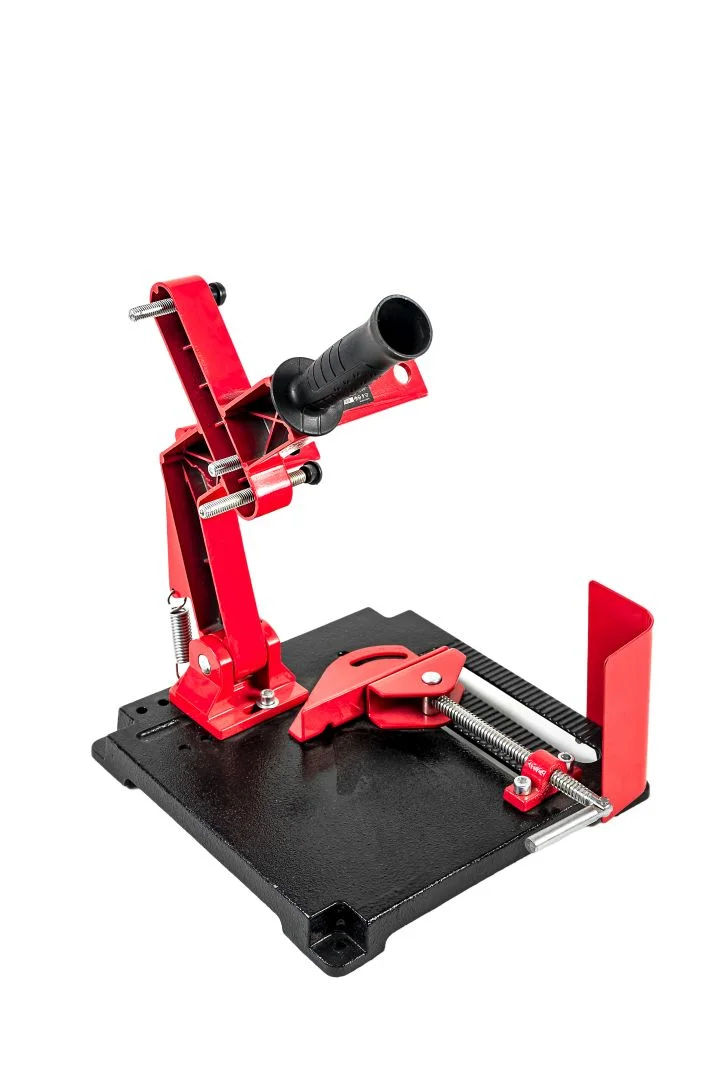 Стойка предназначена для угловых шлифовальных машин с диаметром диска 180-230 мм. Ее используют для стационарных работ. -Угловые тиски с регулировкой до 45° -Прочное основание