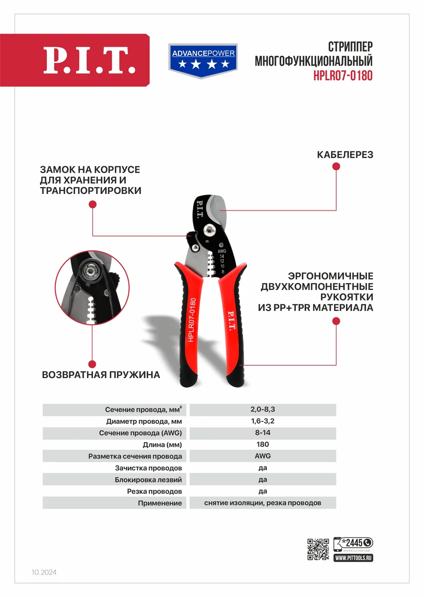 Многофункциональный стриппер HPLR07-0180 - универсальный инструмент для работы с проводами и кабелями различного диаметра и сечения.
