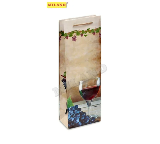 Пакет подарочный под бутылку -Бокал изабелла- глянцевая лаимнация 12*36*8.5см П001-0016