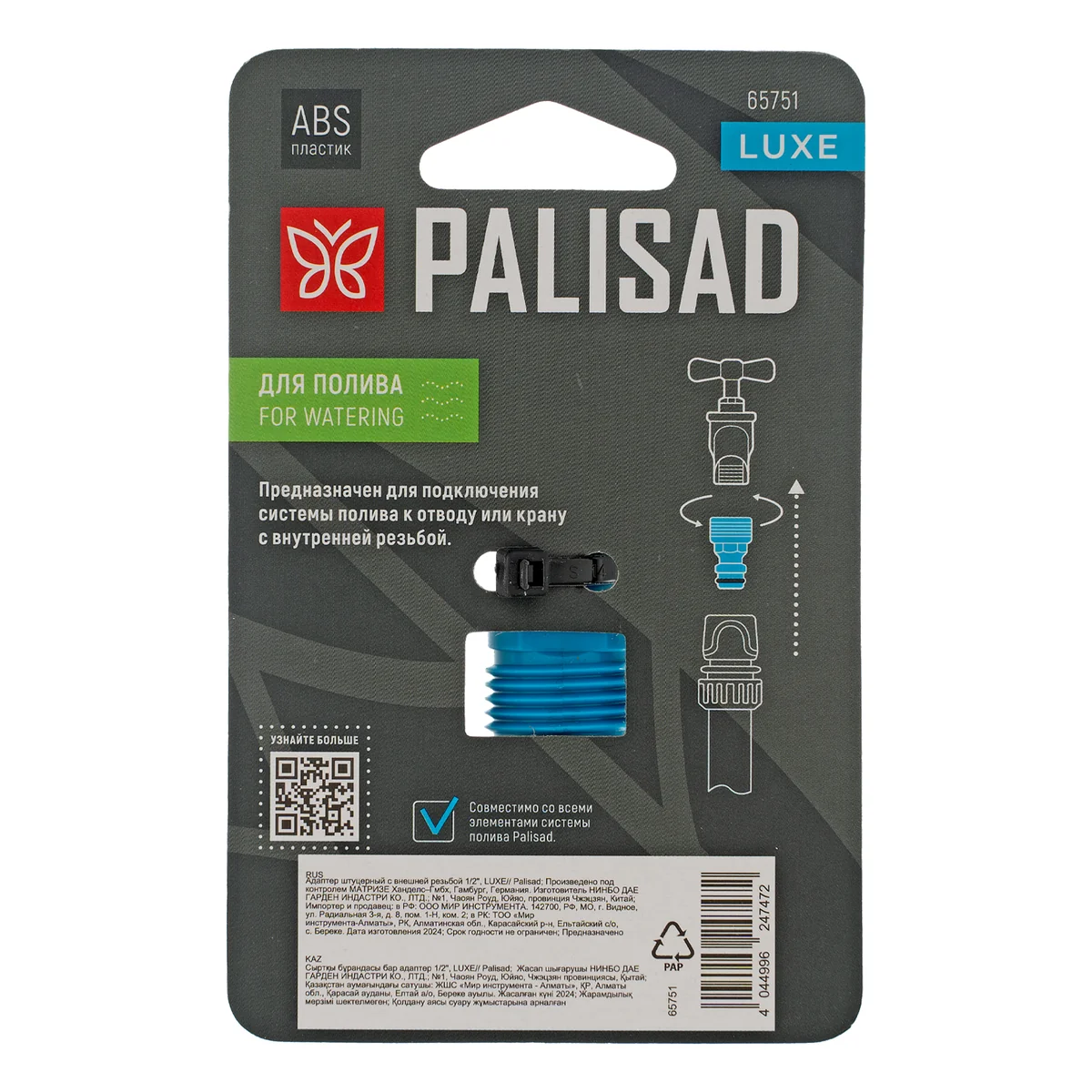 - Универсальность — устройство совместимо с элементами всех поливочных систем ТМ Palisad.