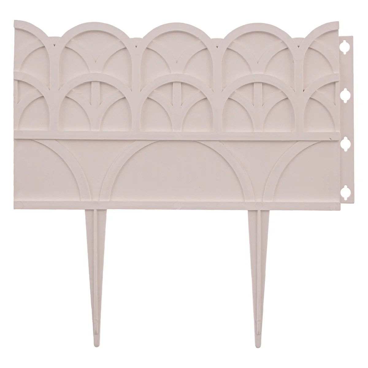 Белый бордюр «Прованс» 65067, 14 х 310 см, используется для оформления озелененных территорий. Его составная конструкция позволяет огородить участок любой формы — клумбу, водоем, приствольный круг дерева, садовую дорожку.Преимущества Бордюр выполнен из высококачественного пластика, поэтому он прочен, долговечен, устойчив к перепадам температур, ультрафиолету и осадкам. Простая установка — достаточно скрепить секции между собой и погрузить их ножки в грунт. Бордюром можно оградить участок любой формы — прямоугольной, круглой, овальной, треугольной. Белый цвет контрастирует с окружающим ландшафтом, придавая ему оригинальный вид.