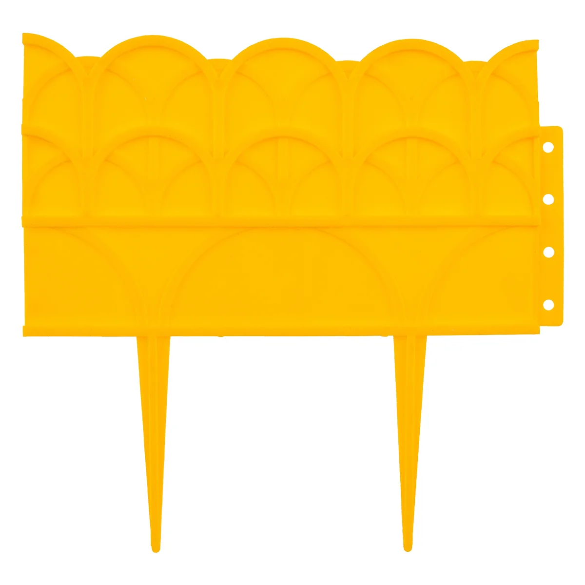 Желтый бордюр «Прованс» 65070, 14 х 310 см используется для оформления озелененных территорий. Его составная конструкция позволяет огородить участок любой формы — клумбу, водоем, приствольный круг дерева, садовую дорожку.Преимущества Бордюр выполнен из высококачественного пластика, поэтому он прочен, долговечен, устойчив к перепадам температур, ультрафиолету и осадкам. Простая установка — достаточно скрепить секции между собой и погрузить их ножки в грунт. Бордюром можно оградить участок любой формы — прямоугольной, круглой, овальной, треугольной. Желтый цвет контрастирует с окружающим ландшафтом, придавая ему оригинальный вид.