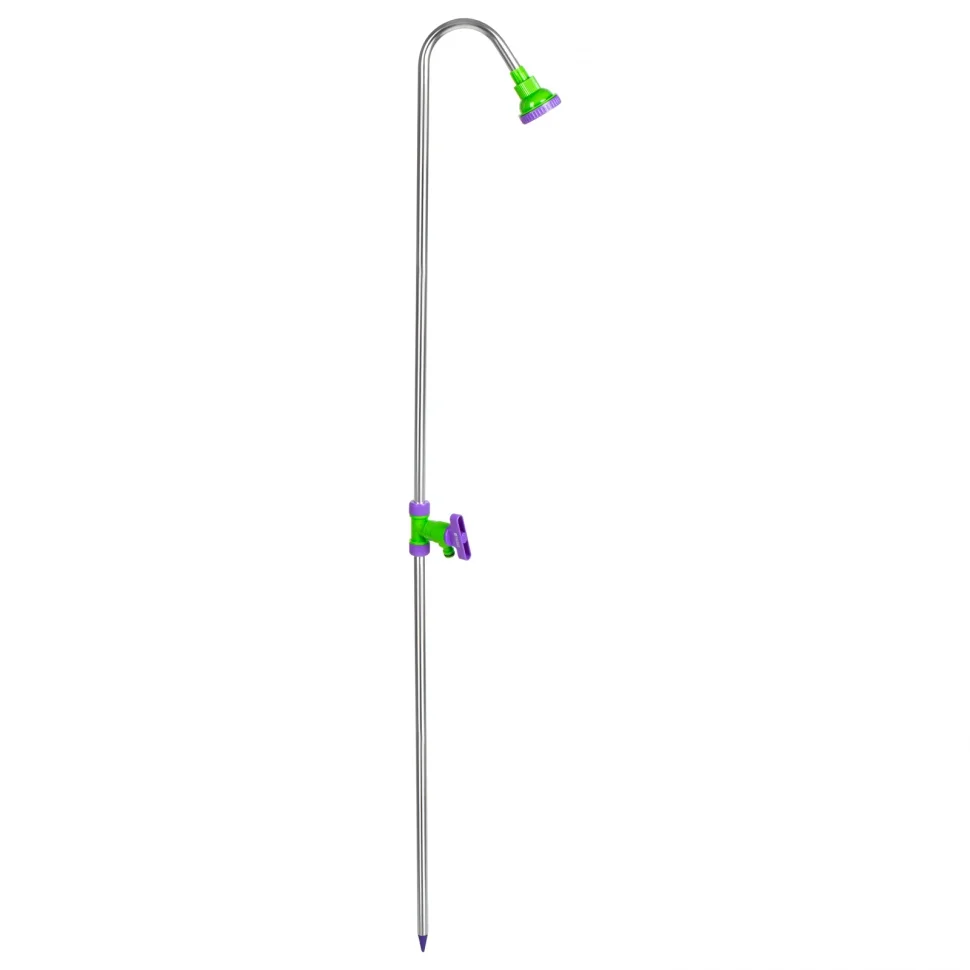 - Быстрая установка — душ фиксируется в почве при помощи заостренной нижней оконечности штанги, что позволяет отрегулировать высоту конструкции.