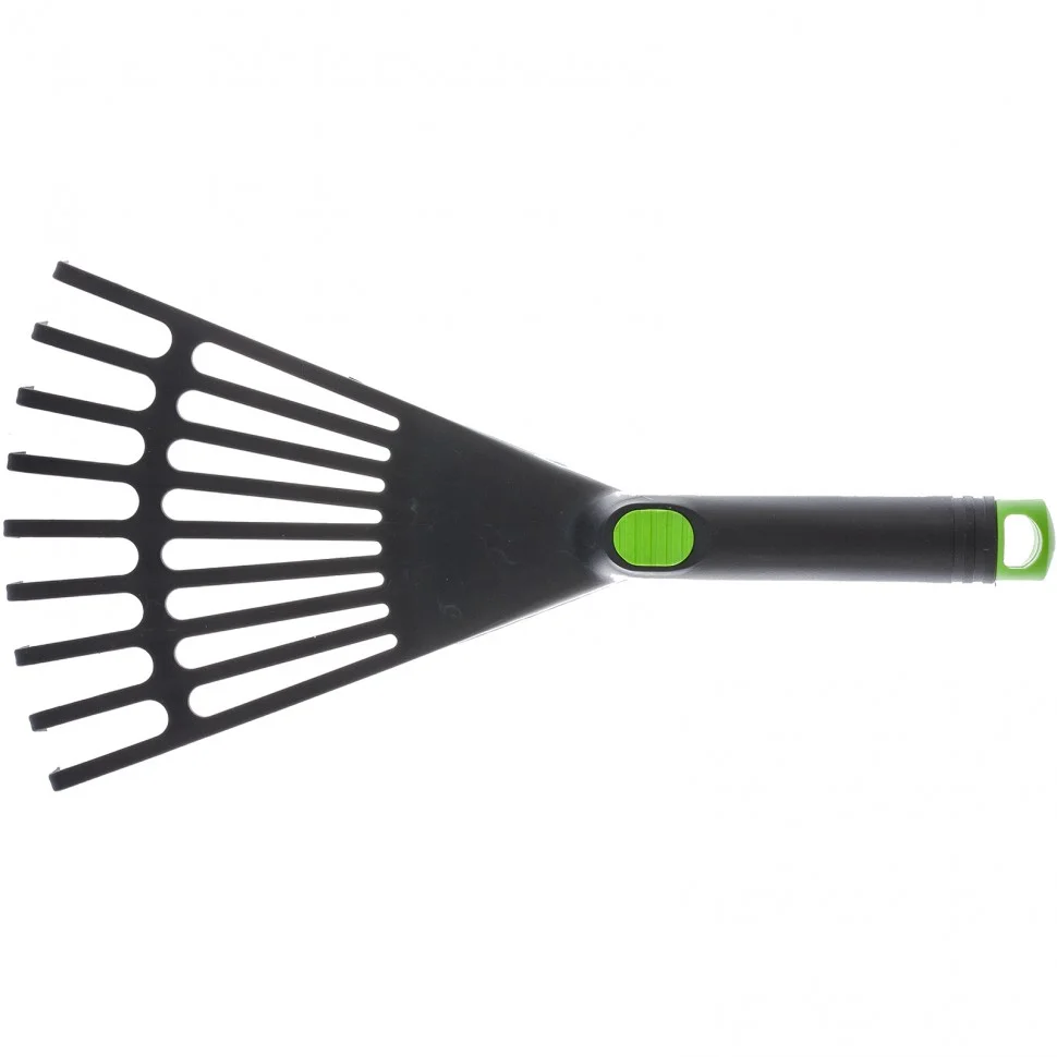 Веерные 9-зубые грабли Palisad NYLON 62395, пластиковые, 175 х 350 мм, используются при проведении мелких садово-огородных работ. Благодаря 9 упругим зубьям с плоским профилем они оптимальны для сбора мелкого мусора и срезанных отростков в цветниках и на грядках.ПреимуществаГрабли долговечны и прочны, т.к. изготовлены из эластичного полипропилена, не подверженного действию ультрафиолета.Рукоятка с упором для пальца удобно ложится в ладонь, что повышает комфортность работы.Отверстие на рукоятке позволяет подвешивать грабли для удобного хранения.