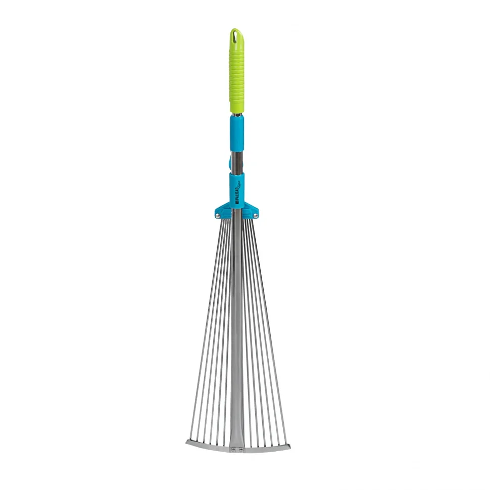 Грабли веерные стальные Palisad 61787, 190-600 х 790-1620 мм, раздвижные с 15 зубьями и стальным черенком, пригодятся для работы на дачном участке. Они используются при уборке веток, мусора, опавших плодов с газонов и грядок.ПреимуществаИнструмент изготовлен из хромированной среднеуглеродистой стали, поэтому устойчив к нагрузкам и коррозии.Ширину рабочей части и длину черенка можно регулировать, что повышает комфортность работы.Поперечная планка на основании увеличивает прочность рабочей части.Благодаря пластиковому подвесу на черенке грабли удобно хранить.