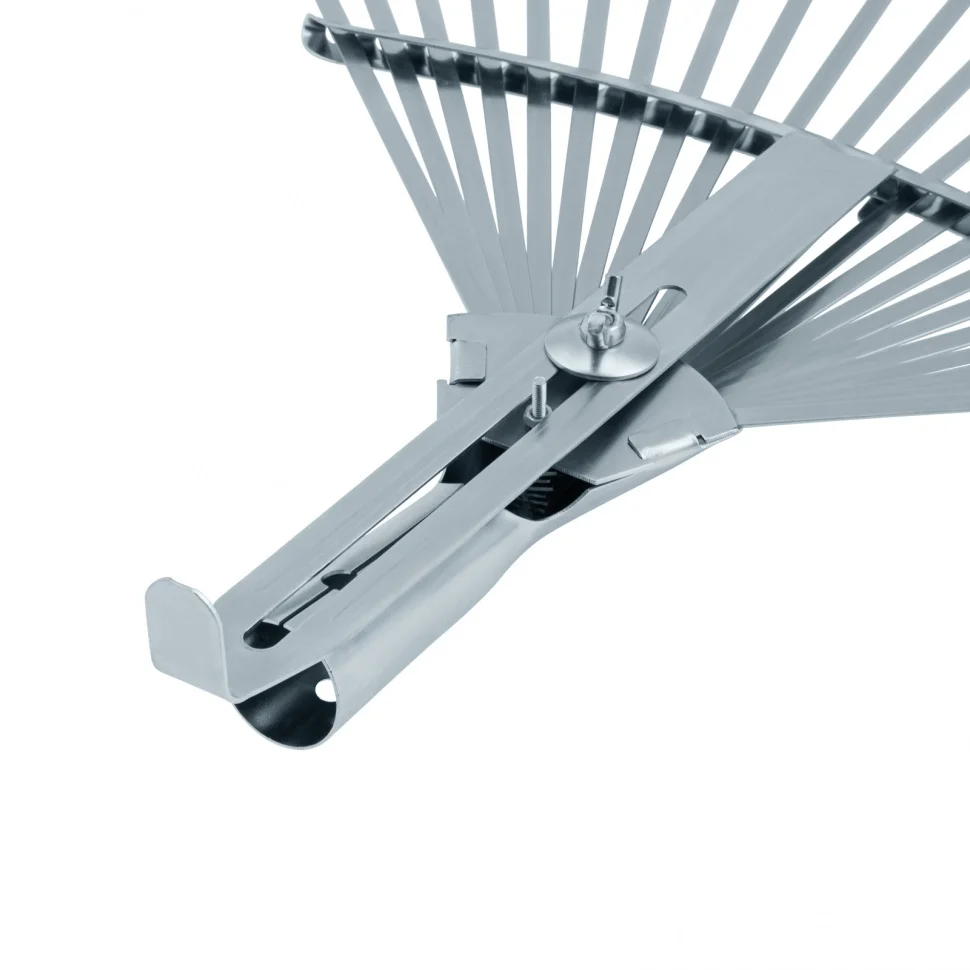 Грабли веерные стальные Palisad 617675 с 22 плоскими зубьями, раздвижные оцинкованные, 300-480 мм, предназначены для очистки от мусора газонов, придомовых территорий и грядок. Незаменимы на дачном участке. Грабли можно установить на любой удобный черенок диаметром 25 мм.ПреимуществаОхват рабочей части регулируется в диапазоне 300-480 мм, что позволяет выбрать оптимальную для работы ширину.Грабли изготовлены из оцинкованной среднеуглеродистой стали, поэтому они долговечны и не боятся коррозии.Поперечная планка повышает прочность инструмента и его устойчивость к нагрузкам.