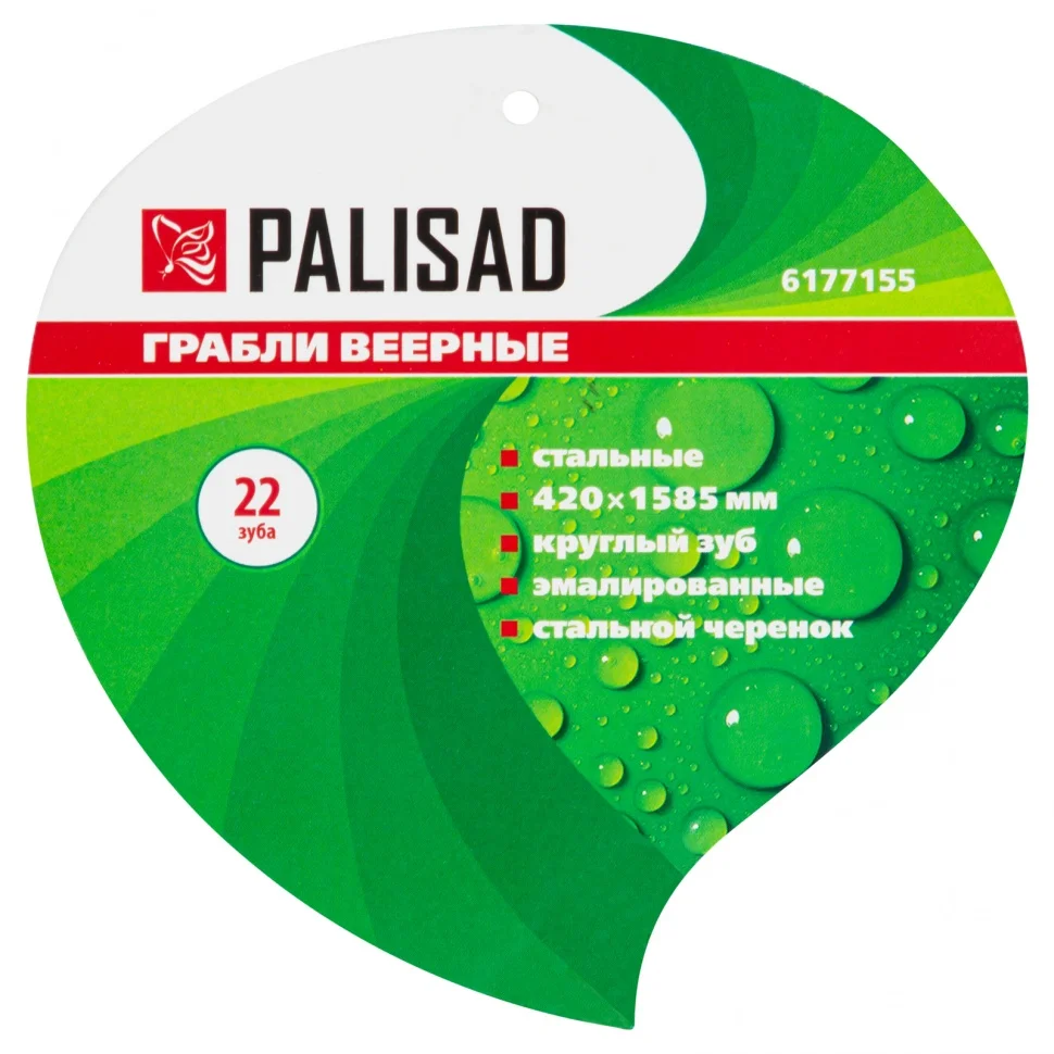 Грабли веерные стальные Palisad 6177155, 420 х 1585 мм, с 22 круглыми зубьями, эмалированные, предназначены для очистки от мусора газонов, придомовых территорий и грядок. Незаменимы на дачном участке. Грабли поставляются в сборе со стальным черенком.ПреимуществаГрабли изготовлены из среднеуглеродистой стали и покрыты порошковой эмалью, поэтому они долговечны и не боятся коррозии.Поперечная планка повышает прочность инструмента и его устойчивость к нагрузкам.Благодаря пластиковому подвесу на черенке грабли удобно хранить.
