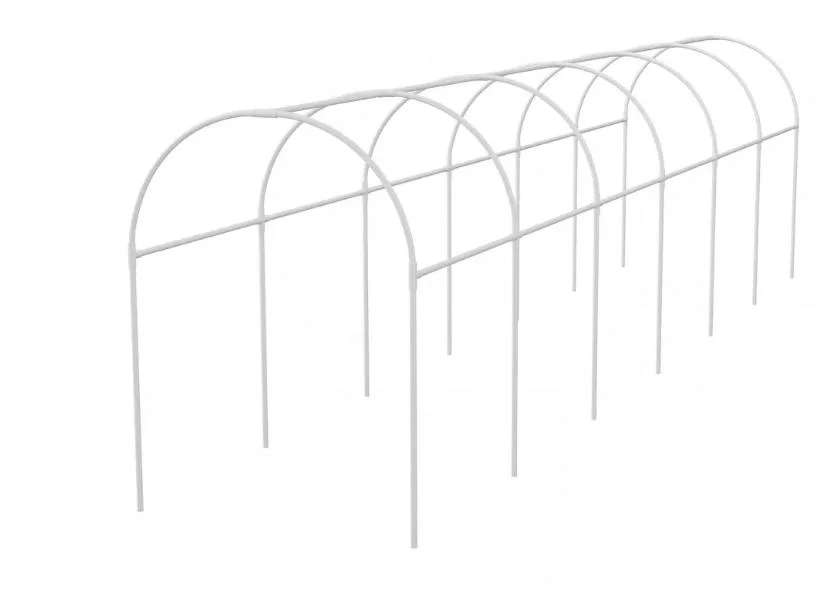 Белый пластиковый каркас Palisad 63902 размером 500 х 110 х 120 см, с диаметром дуги 20 мм, предназначен для сборки парника. Благодаря арочной форме на крыше парника не скапливаются снег и вода, что снижает нагрузку на конструкцию. Каркас будет полезен дачникам, обеспечит надежную защиту растений от внешних воздействий.