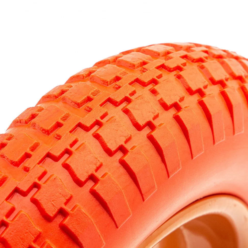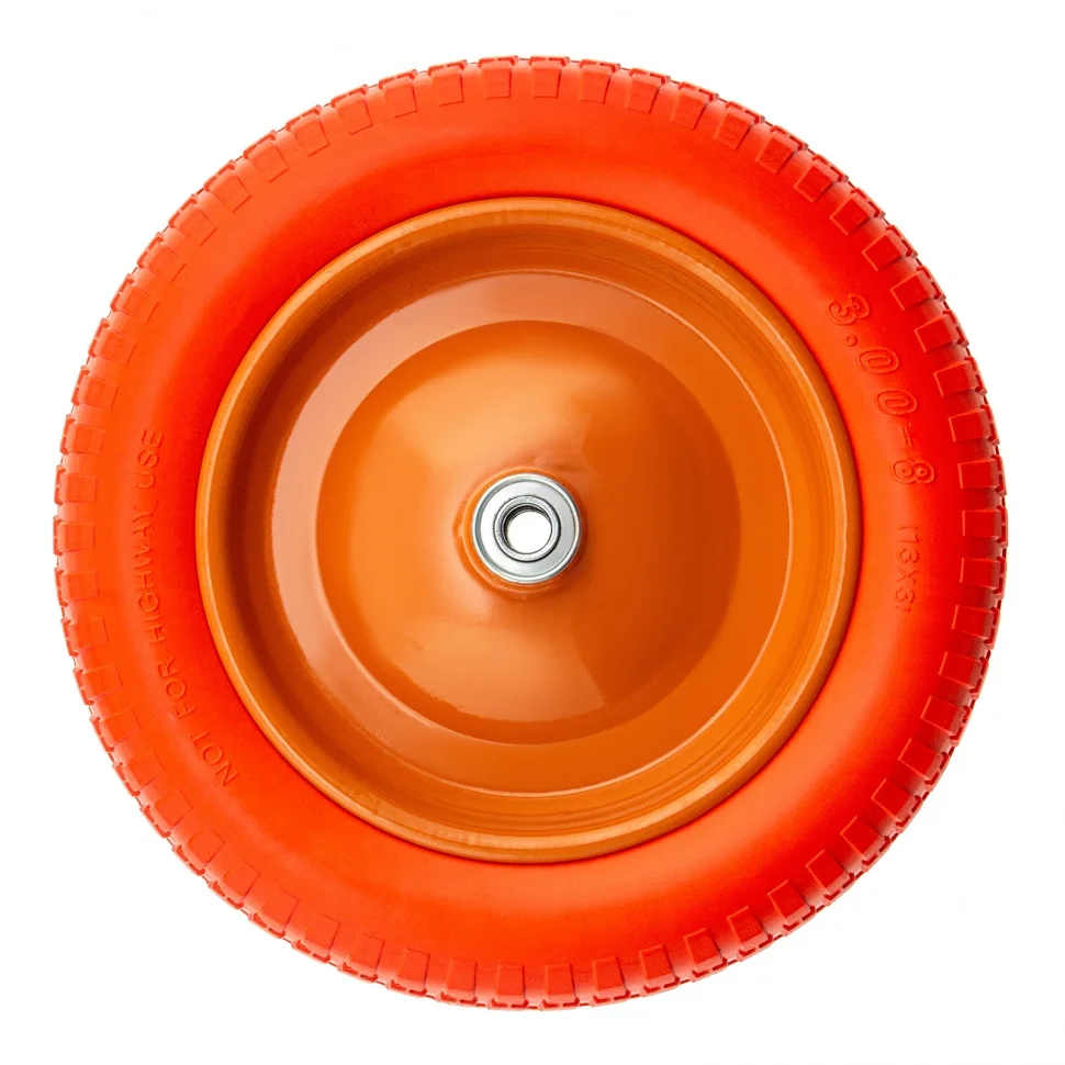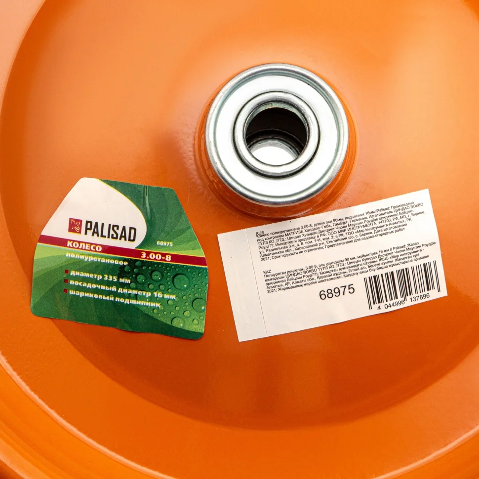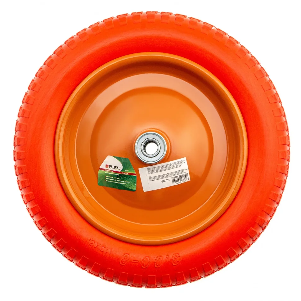 Полиуретановое колесо 3.00-8 Palisad 68975, с подшипником 16 мм и длиной оси 90 мм, используется для транспортировки грузов. Устанавливается на садовые тачки, подходит для Palisad 689104, 689123, 689125, 689153, 689223, 689613, 68969, Сибртех 68961. Колесо из полиуретана не боится проколов, легко отмывается от грязи и не нуждается в подкачке в отличие от пневматических колес.ПреимуществаПлавный ход — колесо с глубоким протектором обладает высокими амортизирующими свойствами.Прочность — стальной диск имеет сплошной сварной шов по всей окружности, ось надежно фиксируется в ступице благодаря стальным подшипникам.Высокий ресурс — полиуретановое колесо не разрушается от воздействия влаги, солнечных лучей, бензина и масла, выдерживает температуру -25 до + 50 ℃.