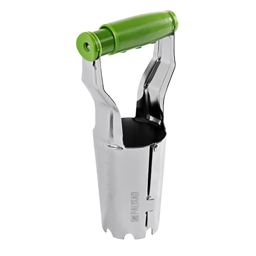 Стальной посадочный конус Palisad 644965, 60 х 100 мм, позволяет формировать лунки перед посадкой рассады и луковичных растений. Раздвижной корпус с заклепками надежно захватывает землю, избавляя от необходимости удалять ее из лунки. Конус будет полезен при проведении садово-огородных работ.