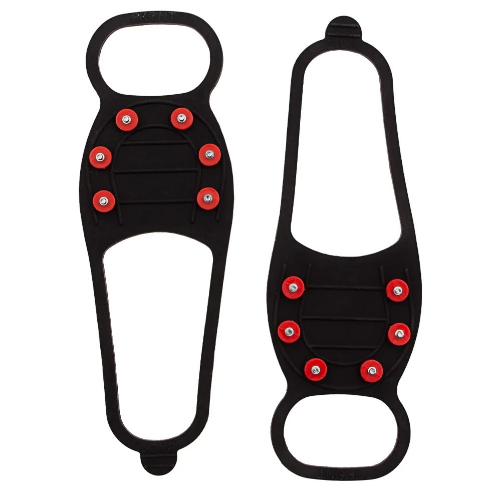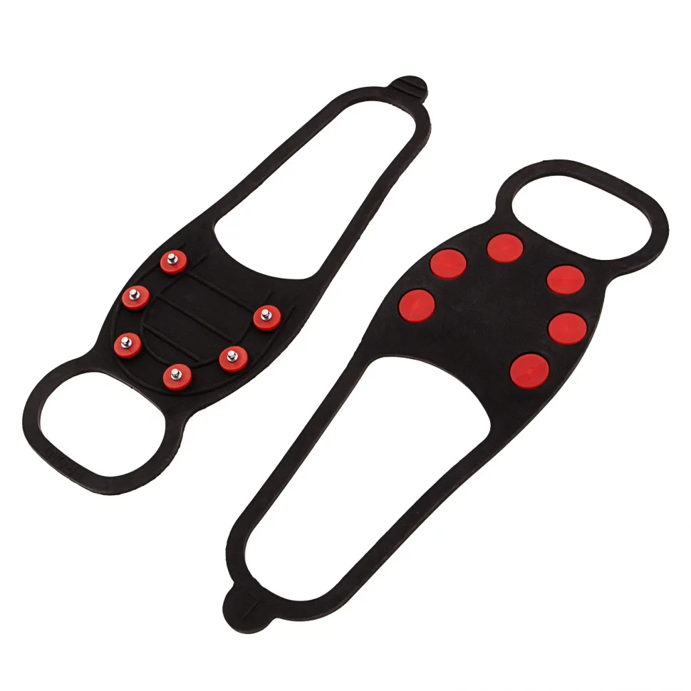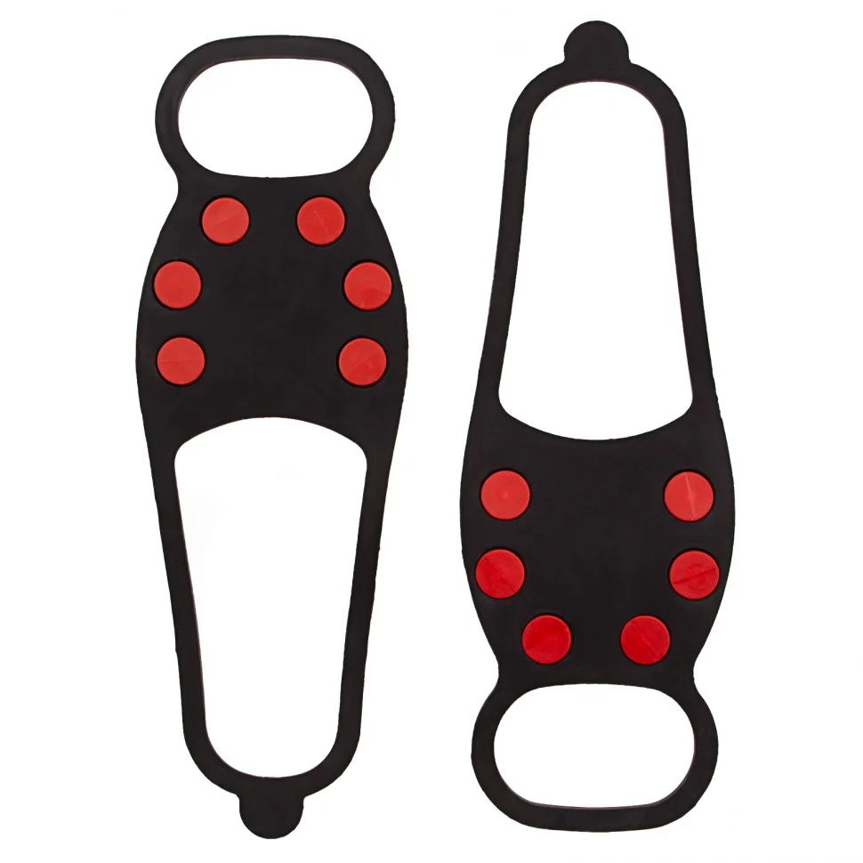 Универсальные ледоступы Palisad Camping 695025 размера L (37-42) предназначены для безопасного передвижения по обледеневшим дорогам. В передней части каждой накладки имеется 6 элементов с заостренными зубцами, которые обеспечивают надежное сцепление с поверхностью. С ледоступами можно гулять, ходить в магазин и ездить на работу, не опасаясь падения.ПреимуществаЛедоступы изготовлены из морозостойкого каучука, который выдерживает температуру до -40 градусов, поэтому они не лопнут и не потрескаются даже в сильный мороз.Эластичный материал накладок хорошо растягивается, и их легко можно надеть на обувь практически любого размера (от 37 до 42).Стальные шипы не гнутся и не истираются, а заостренные зубцы глубоко проникают в лед, исключая падение человека.Форма накладок позволяет закрепить их на любой обуви, в том числе сапогах или ботинках на каблуке, поэтому ледоступы подходят и мужчинам, и женщинам.