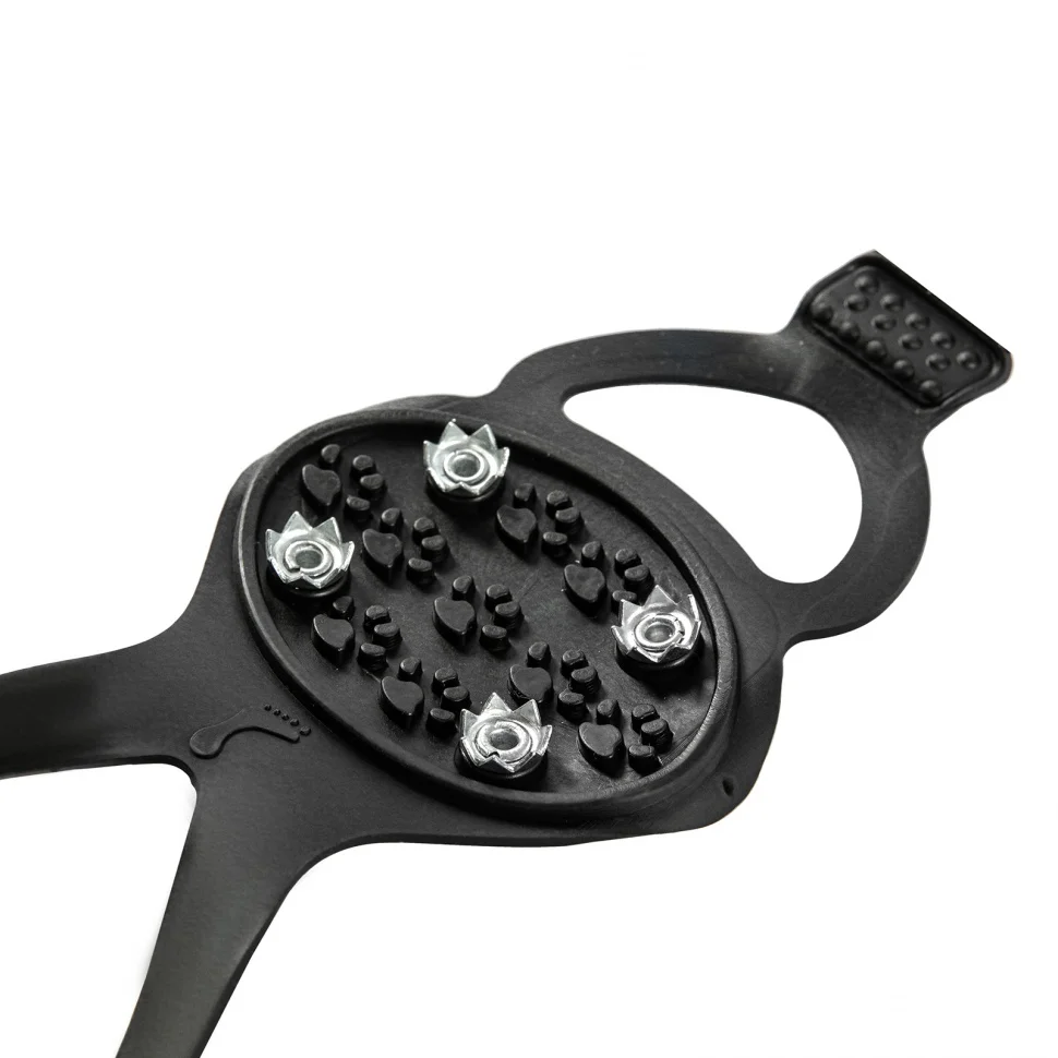 Универсальные ледоступы Palisad Camping 69507 размера L/XL (35-47) предназначены для безопасного передвижения по обледеневшим дорогам. В передней части каждой накладки имеется 4 элемента в виде звездочек с заостренными зубцами, которые обеспечивают надежное сцепление с поверхностью. С ледоступами можно гулять, ходить в магазин и ездить на работу, не опасаясь падения.Преимущества Ледоступы изготовлены из морозостойкого каучука, который выдерживает температуру до -40 градусов, поэтому они не лопнут и не потрескаются даже в сильный мороз. Эластичный материал накладок хорошо растягивается, и их легко можно надеть на обувь практически любого размера (от 35 до 47). Стальные шипы не гнутся и не истираются, а заостренные зубцы глубоко проникают в лед, исключая падение человека. Форма накладок позволяет закрепить их на любой обуви, в том числе сапогах или ботинках на каблуке, поэтому ледоступы подходят и мужчинам, и женщинам. Ледоступы плотно прилегают к обуви и не ощущаются во время ходьбы. Пара ледоступов весит всего 134 г, их можно носить в сумке, чтобы гололед не застал врасплох.