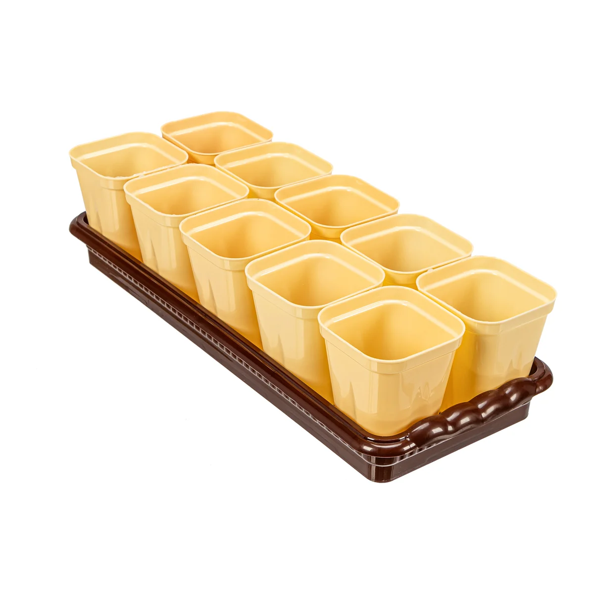 - Многократное применение — горшочки и поддон изготовлены из полипропилена, их можно использовать не один сезон.