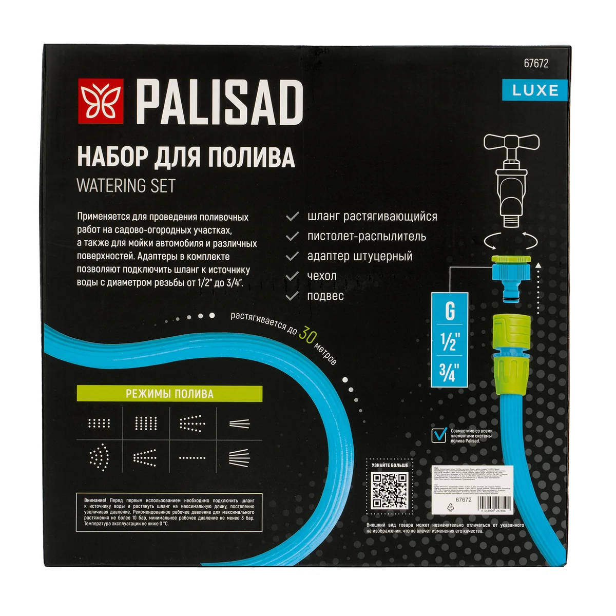 Набор поливочный, шланг 10-30м, пистолет 8 реж., чехол, подвес, LUXE Palisad 67672