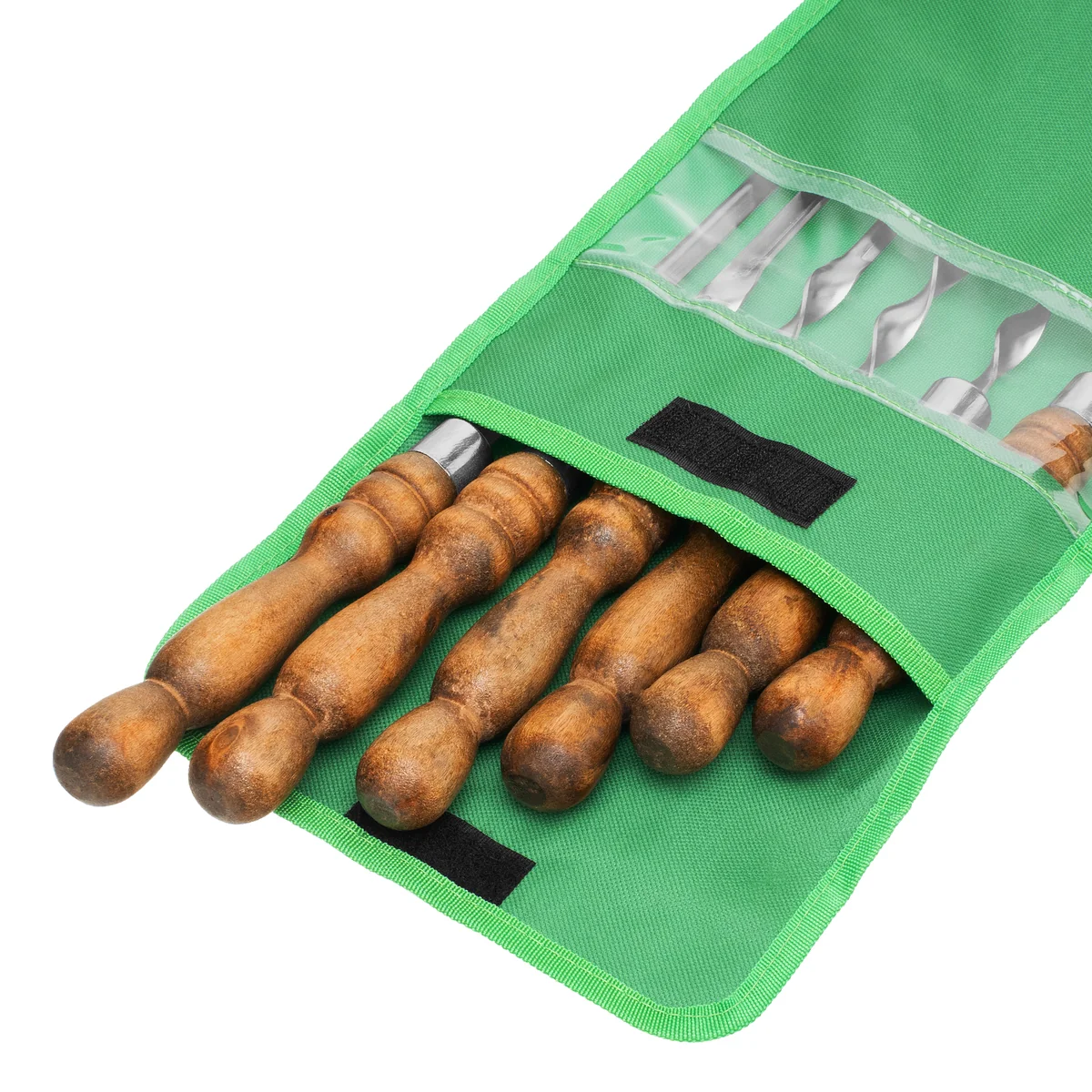 - Комфортное использование — отполированные рабочие части шампуров имеют гладкую поверхность, поэтому на них легко нанизывать кусочки продуктов.