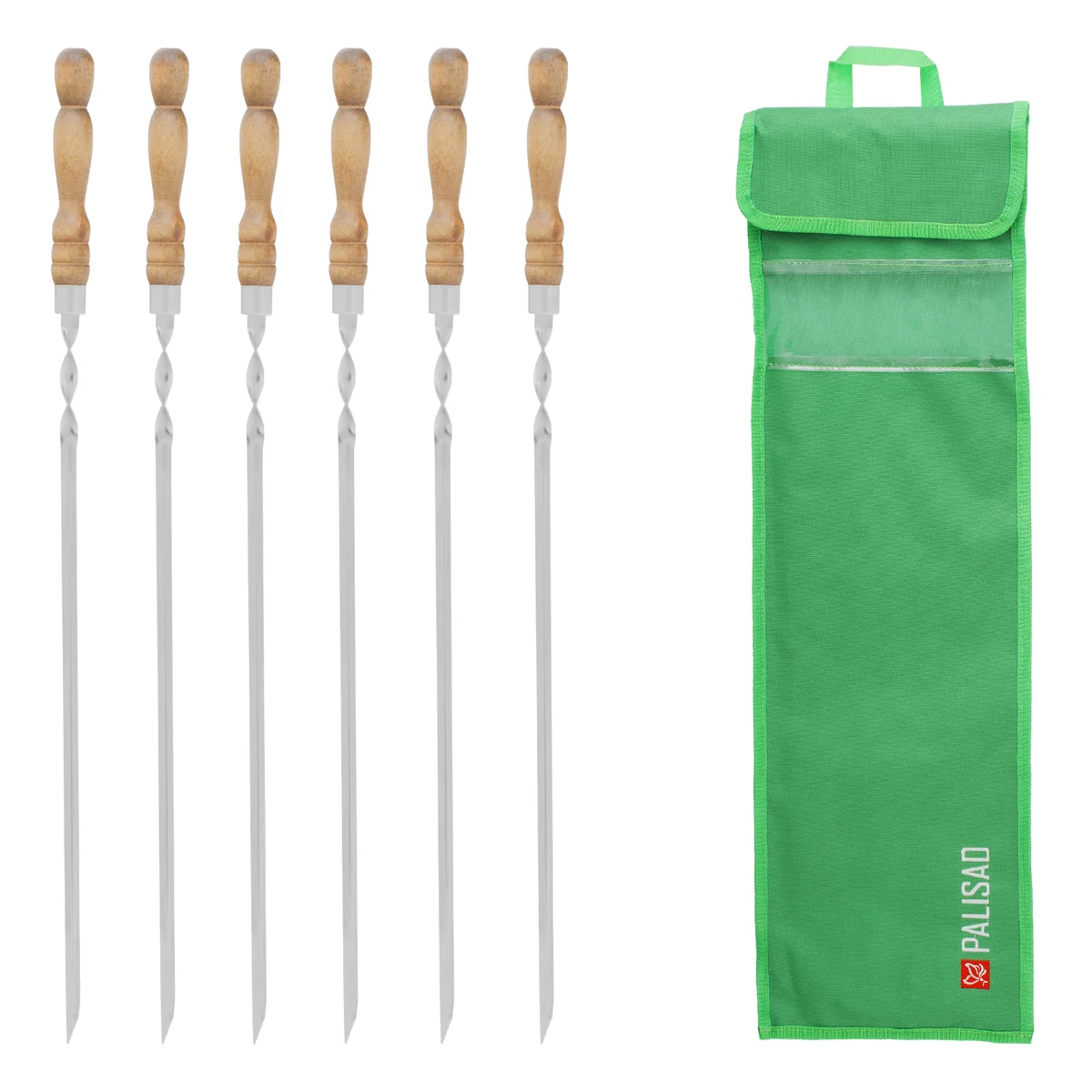Набор угловых шампуров длиной 650 мм Palisad Camping 69752 включает в себя 6 предметов с цельной деревянной рукояткой, упакованных в чехол. Служит для приготовления шашлыка из мяса или птицы, а также для приготовления овощей. Благодаря угловому профилю шампуров кусочки продуктов легко нанизываются и хорошо держатся на них. Набор пригодится для отдыха на даче, в походе, на пикнике.
