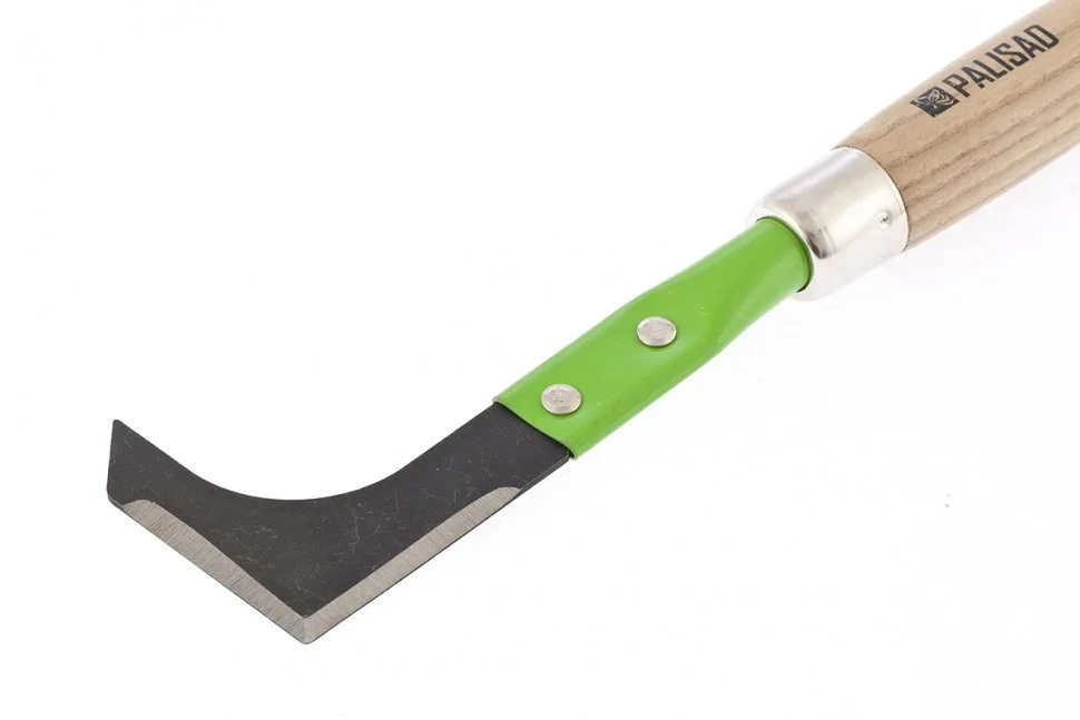 Универсальный стальной нож Palisad Classic 62324, 70 х 350 мм, с деревянной рукояткой, используется для подрезания корней сорняков и очистки межплиточного пространства. Инструмент успешно справляется с этими задачами благодаря двум острым кромкам, серповидному лезвию и наконечнику. Рабочая часть изготовлена из среднеуглеродистой стали и закалена, поэтому нож очень прочный и выдерживает длительное использование. Он будет полезен для ухода за растительностью и садовыми дорожками на дачном участке.ПреимуществаЧерненая поверхность режущей части устойчива к коррозии, что продлевает срок службы инструмента.Рабочая часть закреплена в основании заклепками, что обеспечивает прочность конструкции.Удобная деревянная рукоятка надежно лежит в руке, поэтому работать ножом комфортно.Рукоятка покрыта лаком, что предотвращает ее рассыхание и разбухание.В рукоятке имеется отверстие, позволяющее организовать подвесное хранение инструмента.