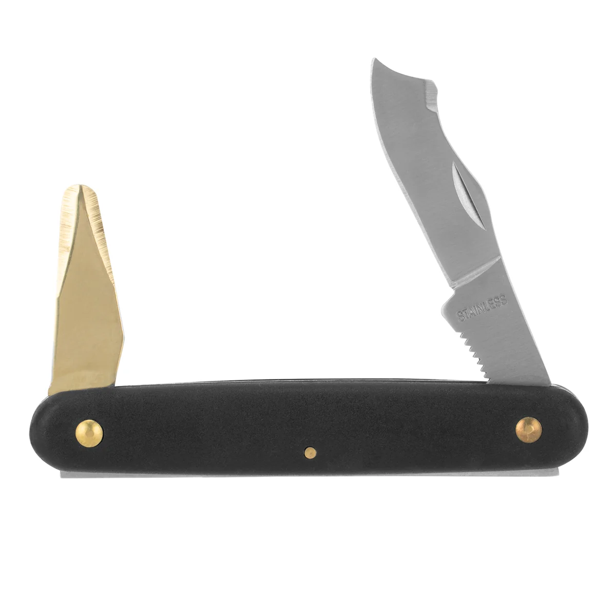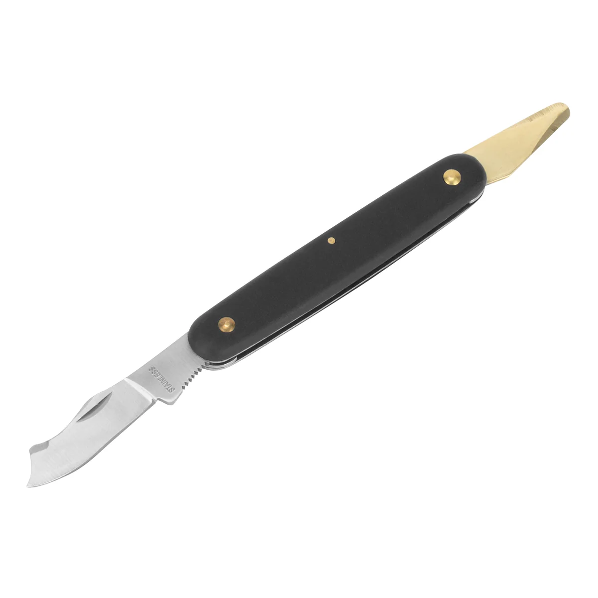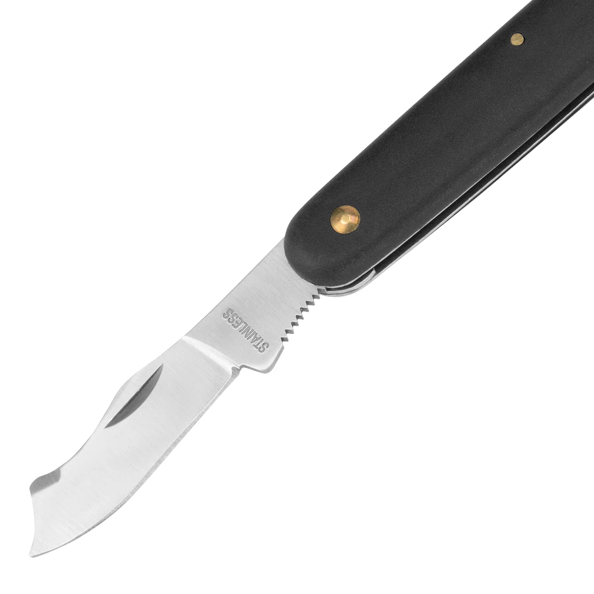 Особенности садового прививочного ножа: Лезвие ножей изготовлено нержавеющей стали марки 420J2, которое останется острым долгое время без заусенцев; Ручка ножа изготовлена из пластика, что позволяет ножу комфортно располагаться в руке и не скользить. Лезвие складывается, благодаря этому транспортировка ножа безопасна.