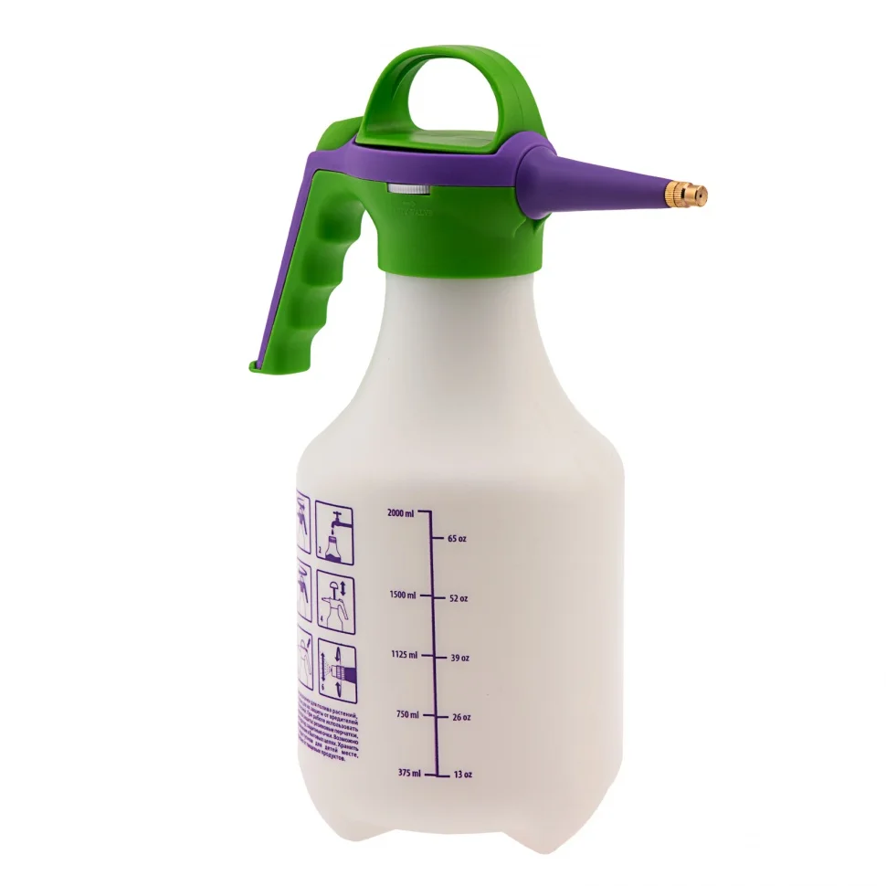 Ручной опрыскиватель Palisad 64739 с баком на 2 л и клапаном сброса давления используется для обработки растений пестицидами и для внесения удобрений. Напор струи можно изменять при помощи регулируемой распыляющей головки. Опрыскиватель удобен для выполнения работ небольшого объема и будет полезен при уходе за растениями на клумбах, грядках в теплицах.ПреимуществаИспользование опрыскивателя безопасно — клапан сброса излишнего давления срабатывает автоматически.Опрыскиватель можно перевести в режим непрерывного полива — ручка снабжена специальным фиксатором.Во время работы устройство удобно держать в руке — на эргономичной ручке имеются выемки под пальцы.Контролировать расход жидкости легко — на емкости имеется мерная шкала.