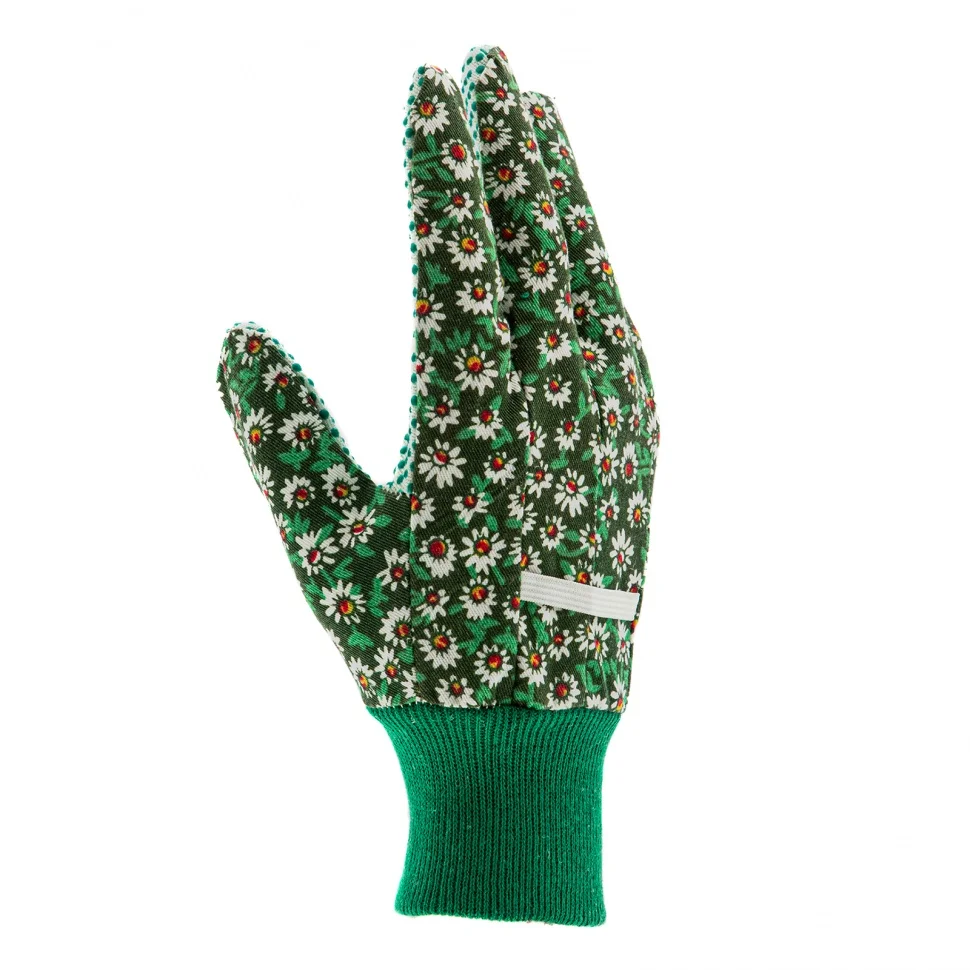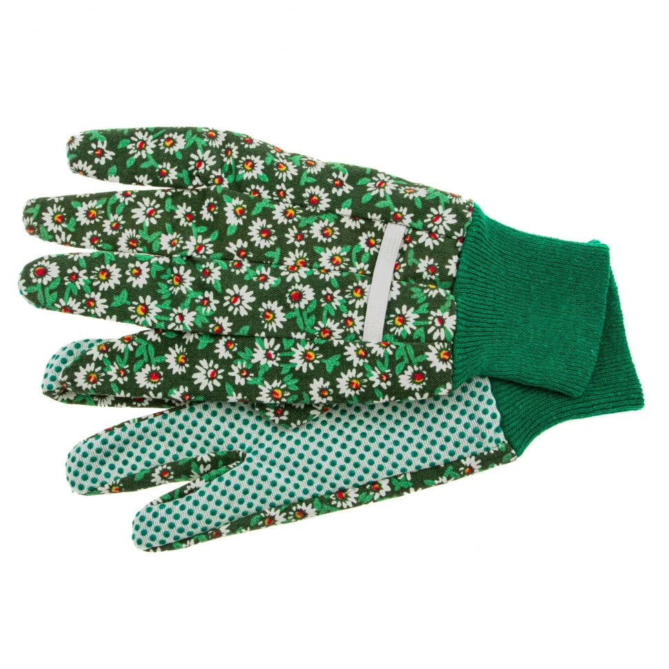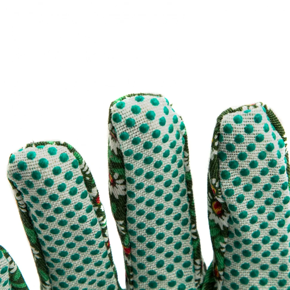Садовые перчатки Palisad 67761 из х/б ткани с ПВХ-точкой, с манжетами, размер S, служат для защиты рук. Они позволят избежать появления порезов, ссадин, царапин и мозолей во время работ в саду и огороде. Нанесение ПВХ-точек на ладонной и пальцевой части позволяет крепко удерживать инструмент. Перчатки будут полезны дома и на даче.ПреимуществаРуки не потеют — перчатки изготовлены из 100%-й хлопчатобумажной ткани, обеспечивающей хороший воздухообмен.Перчатки не сползают с рук — манжеты в виде двойной резинки плотно облегают запястье.Использование перчаток совершенно безопасно — хлопчатобумажное полотно гипоаллергенно.В перчатках комфортно работать — материал приятен на ощупь и не вызывает дискомфорта.