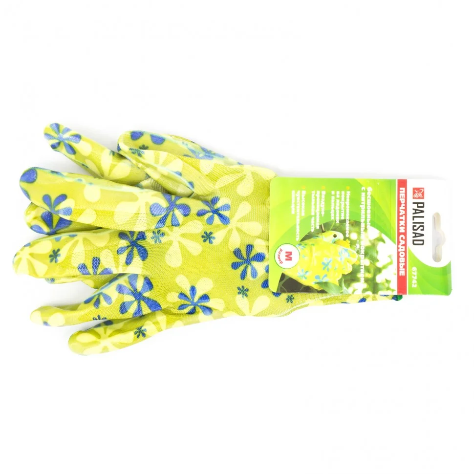 Зеленые садовые перчатки Palisad 67742 из полиэстера с нитрильным обливом, размер M, защищают руки от порезов, проколов, царапин, ссадин и намокания во время садово-огородных работ. Удобно садятся по руке, не стесняя движений. Перчатки пригодятся на дачном участке.ПреимуществаПолиэстер устойчив к истиранию и воздействию ультрафиолета, поэтому изготовленные из него перчатки прослужат долго.Нитрильное покрытие обеспечивает надежное сцепление с рабочей поверхностью, благодаря чему садовый инструмент не выскальзывает из рук.Эластичные манжеты плотно облегают запястья, поэтому перчатки не сползают с рук.Тонкое полотно обеспечивает хороший воздухообмен и тактильную чувствительность пальцев, что повышает комфорт во время работы.Края манжет обработаны на оверлоке, что предотвращает их распускание и продлевает срок службы перчаток.Материал основы не вызывает аллергии, поэтому использование перчаток безопасно для здоровья.Яркая расцветка привлекает внимание и повышает настроение, создавая благоприятную атмосферу во время работы.