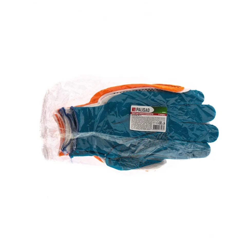 Перчатки в наборе, цвета: оранжевые, синие, белые, ПВХ точка, XL, Россия Palisad 67853