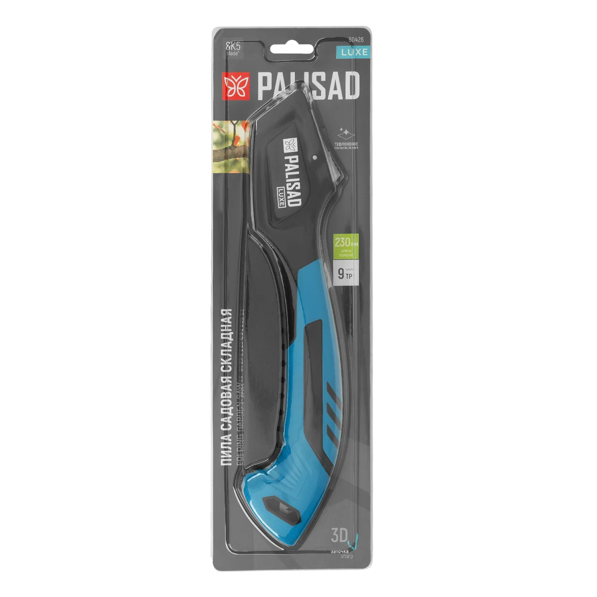 Пила садовая складная, 230 мм, SK5, 3D зуб, тефлон. покрытие, обрезиненная рукоятка, LUXE Palisad 60426
