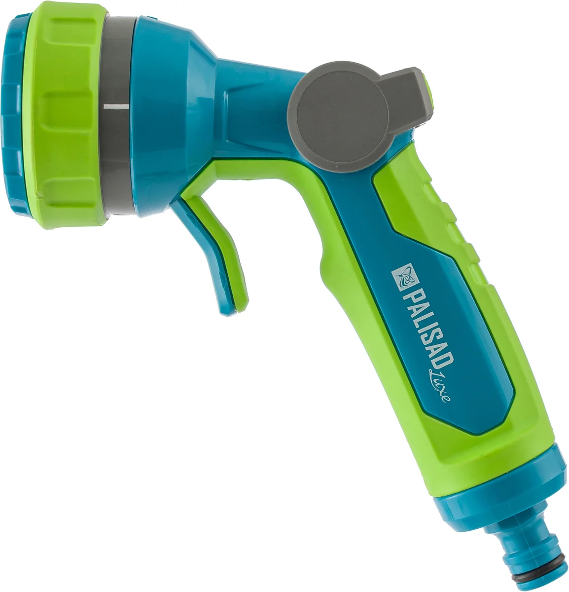 Пистолет-распылитель Palisad Luxe 65147 с 4 режимами и плавным регулятором напора используется в качестве насадки на шланг и совместим с любыми системами полива ТМ Palisad. С его помощью можно быстро полить огород, сад, газон, очистить дорожки и рабочий инвентарь. Простая, но надежная конструкция пистолета позволяет использовать его для решения как бытовых, так и профессиональных задач.Преимущества4 режима полива — можно выбрать оптимальный в зависимости от типа работ (конусное распыление, жесткая струя, горизонтальная струя, душ).Высокий ресурс — корпус изготовлен из прочного и долговечного ABS-пластика.Плавающий курок — можно осуществлять непрерывный полив, а также регулировать напор воды.Быстросъемный коннектор с функцией «аквастоп» — после отсоединения пистолета от шланга подача воды немедленно прекращается.