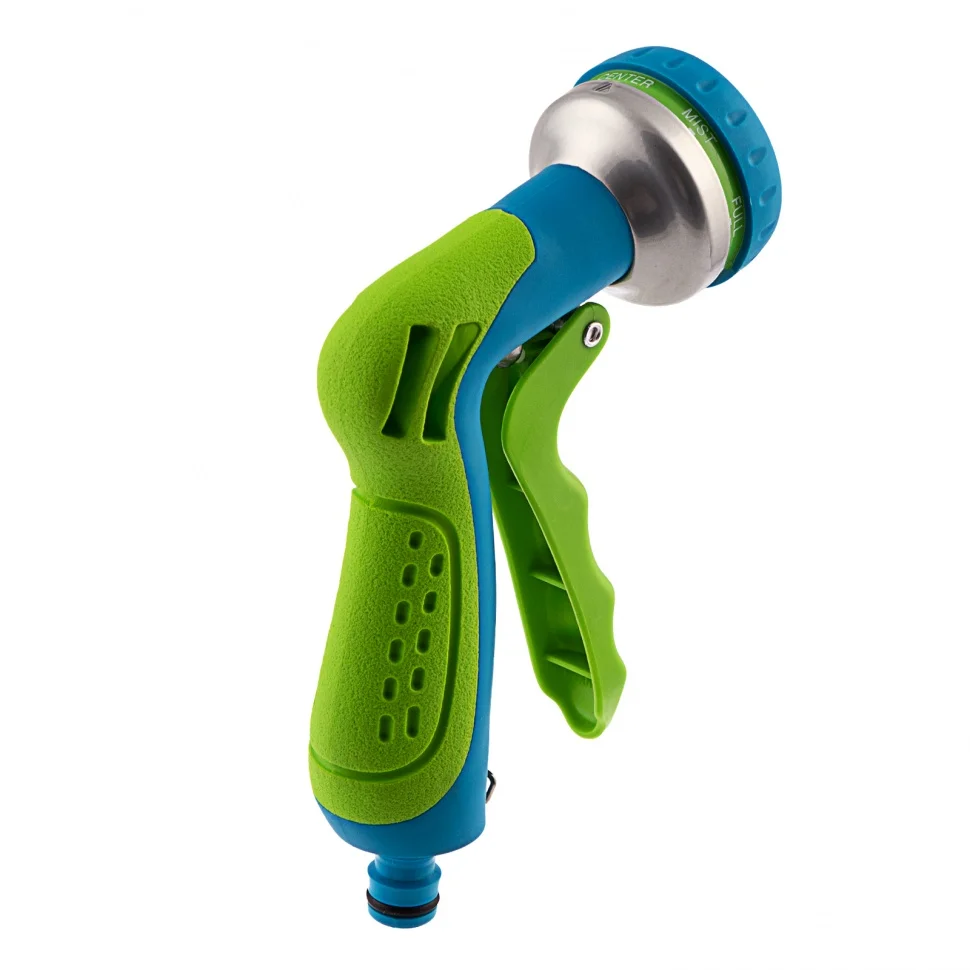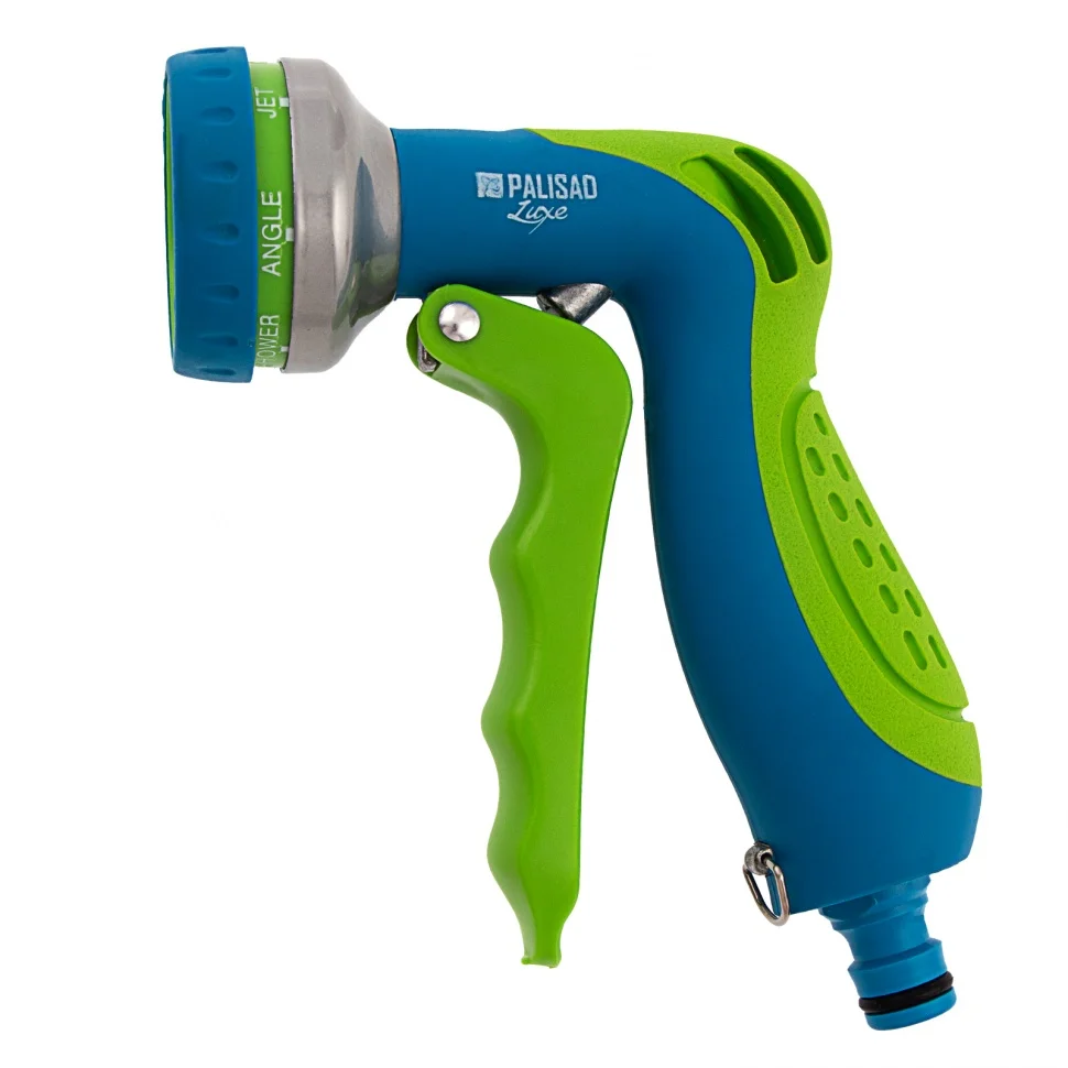 Пистолет-распылитель Palisad LUXE 65175 с 7 режимами полива и эргономичной рукояткой облегчает поливочные работы. Благодаря ему можно очистить садовые дорожки, промыть инвентарь, оросить клумбы и грядки и т.д. Это незаменимое устройство для владельцев загородных домов и работников коммунальных служб при организации ухода за огородами, придомовыми территориями, скверами. Универсальный штуцер на пистолете подходит для любых систем полива ТМ Palisad.ПреимуществаКонструкция пистолета отличается прочностью и долговечностью благодаря корпусу из стали, высококачественного ABS-пластика с резиной.Пистолет оснащен специальным фиксатором, поэтому курок не нужно удерживать рукой для непрерывного полива.Для качественного орошения растений любого типа можно использовать один из 7 типов распыления: жесткая, двойная плоско-вертикальная/горизонтальная струя, душ, сочащийся режим, распыление в режиме «туман» или конусное.Благодаря быстросъемному коннектору с аквастопом после отключения пистолета от шланга прекращается подача воды.Двухкомпонентная рукоятка повышает удобство работы, т.к. не скользит даже в мокрых руках.