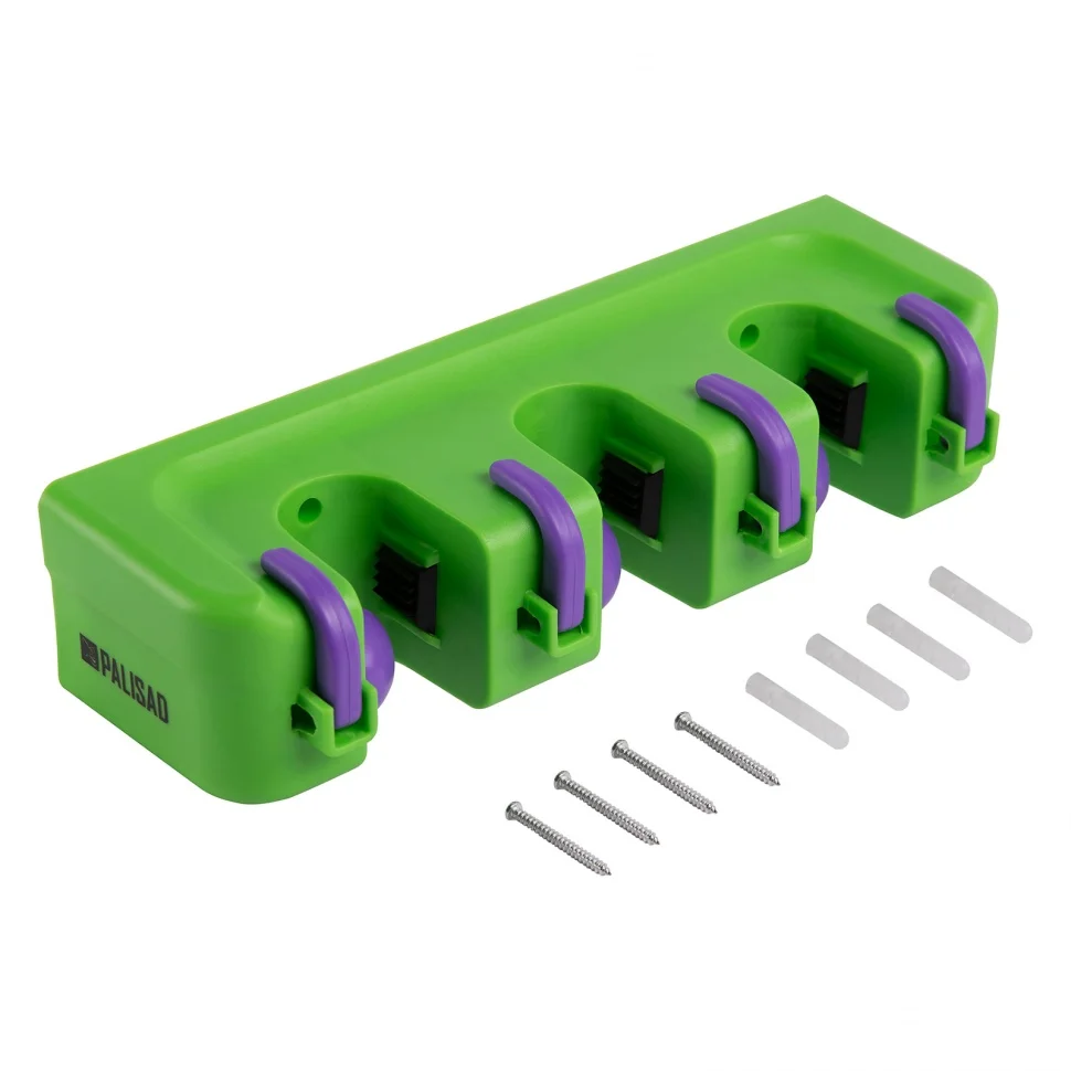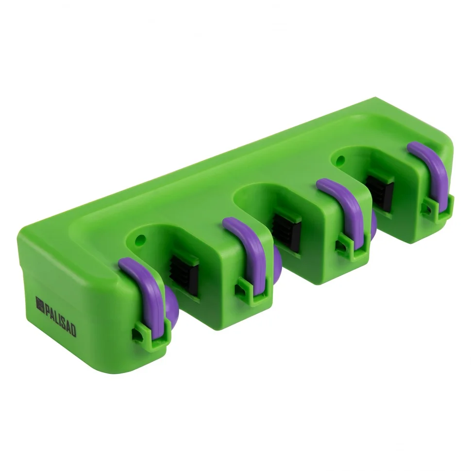 Пластиковый настенный держатель для садово - огородного инструмента, 3 ячейки, 4 крюка, Palisad 68301