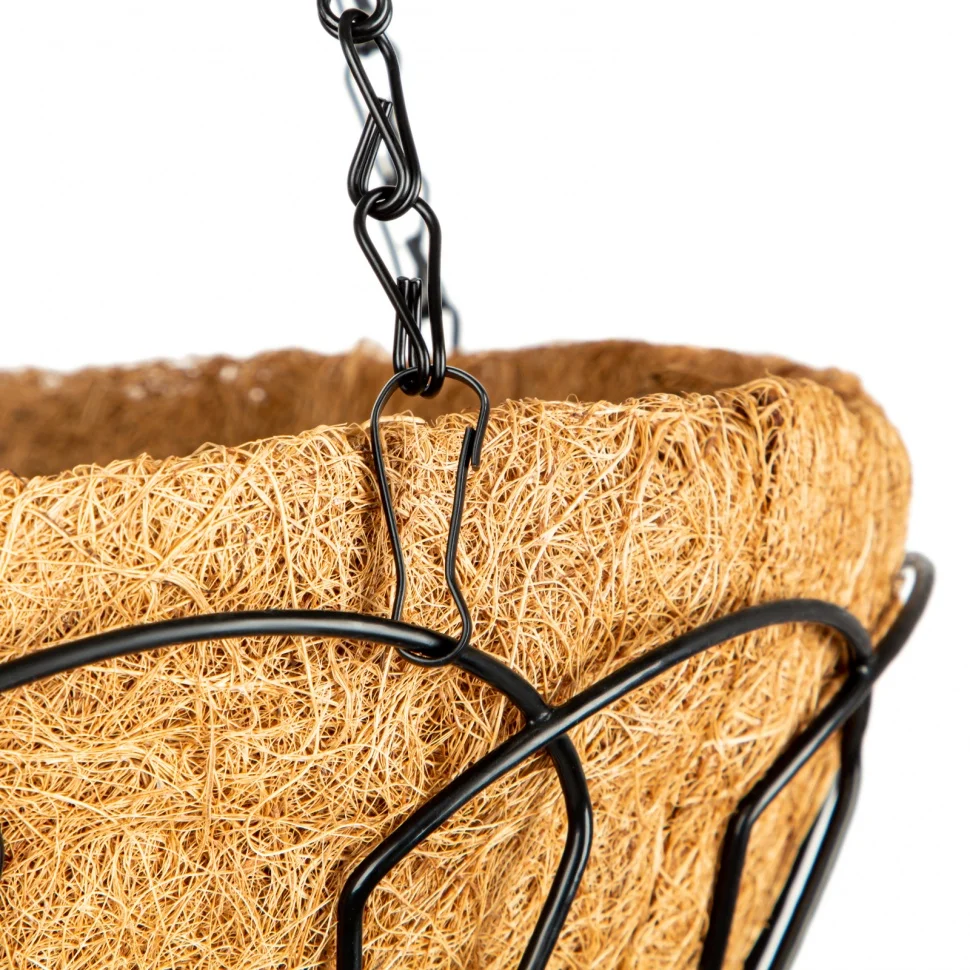 Подвесное кашпо с кокосовой корзиной Palisad 69002, диаметр 30 см, позволяет создать вертикальные цветочные композиции из ампельных и вьющихся растений. Оно станет прекрасным украшением дома, балкона, дачи и сада. Также оно оптимально подходит для малогабаритных помещений, т.к. не занимает много места.ПреимуществаСтальная конструкция кашпо отличается высоким ресурсом и прочностью.Окрашенный каркас и цепи не подвержены коррозии, поэтому кашпо не разрушается от воздействия воды.Для кашпо не нужно докупать горшок, т.к. его заменяет кокосовая корзина.Корзина выполнена из экологичного материала, который не вредит растениям, обеспечивает хорошую аэрацию и оптимальный уровень влаги.Кашпо можно подвесить в любом подходящем месте за удобный крючок.
