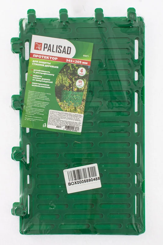 Протектор для защиты стволов деревьев, комплект 4 шт., зеленый// Palisad 65071, 36 х 21,7 см, позволяет обеспечить защиту стволов деревьев, кустарников, цветов и иных конструкций от повреждения триммером, газонокосилкой, а также является дополнительной защитой от грызунов. В комплекте 4 секции длиной 36 см, шириной 21,7 см и толщиной 1,65 мм.ПреимуществаПротектор устойчив к воздействию ультрафиолета и осадков, т.к. изготовлен из прочного полипропилена.На протяжении всего срока использования и независимо от времени года геометрические пропорции секций сохраняются.Надежные замки – защелки обеспечивают надежность соединения