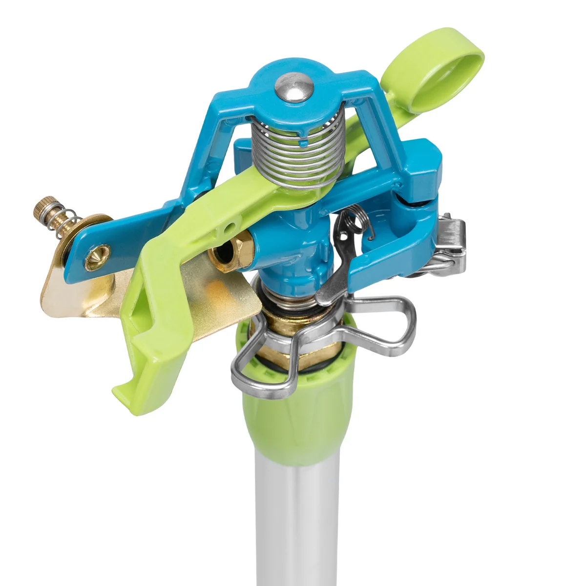 Импульсный разбрызгиватель на треноге Palisad LUXE 65816 с регулировкой распыления на 360° позволяет обеспечить полив на участке площадью до 625 кв. м. Меняя высоту, угол струи и дальность разбрызгивания, можно задавать конкретный сектор орошения. Устройство пригодится для ухода за зелеными насаждениями на приусадебном участке и прочих озелененных территориях.