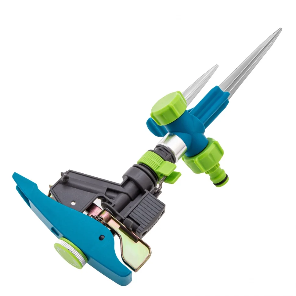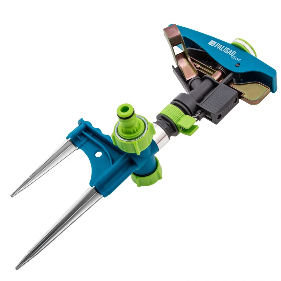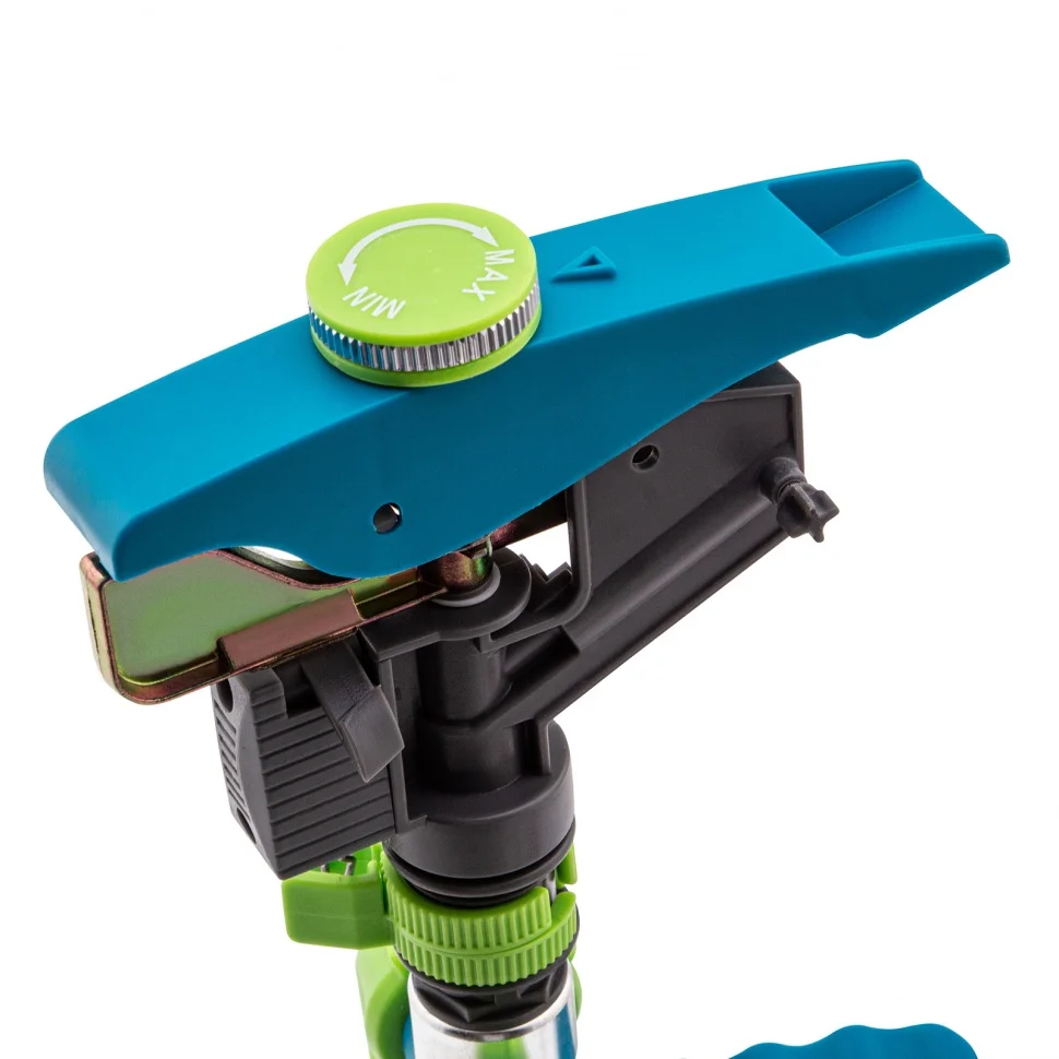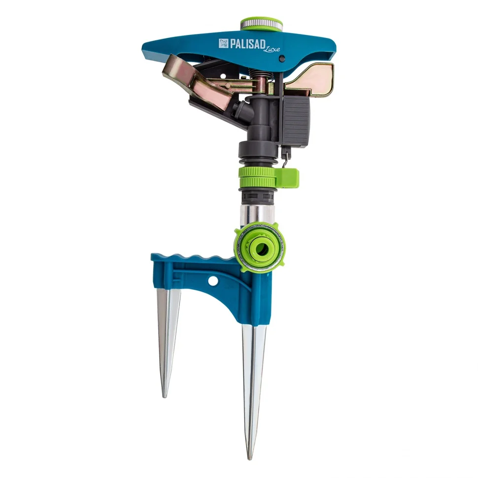 Импульсный усиленный распылитель Palisad LUXE 65407 с регулировкой угла горизонтального распыления предназначен для облегчения поливочных работ. Он пригодится дачникам и фермерам для поддержания оптимального уровня влажности на огородах, полях, в парках и т.д. Импульсный распылитель идеально подходит для больших участков, т.к. обеспечивает площадь полива до 346 кв. м.ПреимуществаСтальной корпус в сочетании с высококачественным ABS-пластиком является залогом надежности и высокого ресурса распылителя.Распылитель может осуществлять полив по секторам благодаря настраиваемому углу распыления.Регулировка дальности полива до 10,5 м позволяет выбрать оптимальное расстояние подачи воды в зависимости от размера участка.Двойная пика надежно фиксирует распылитель в почве.