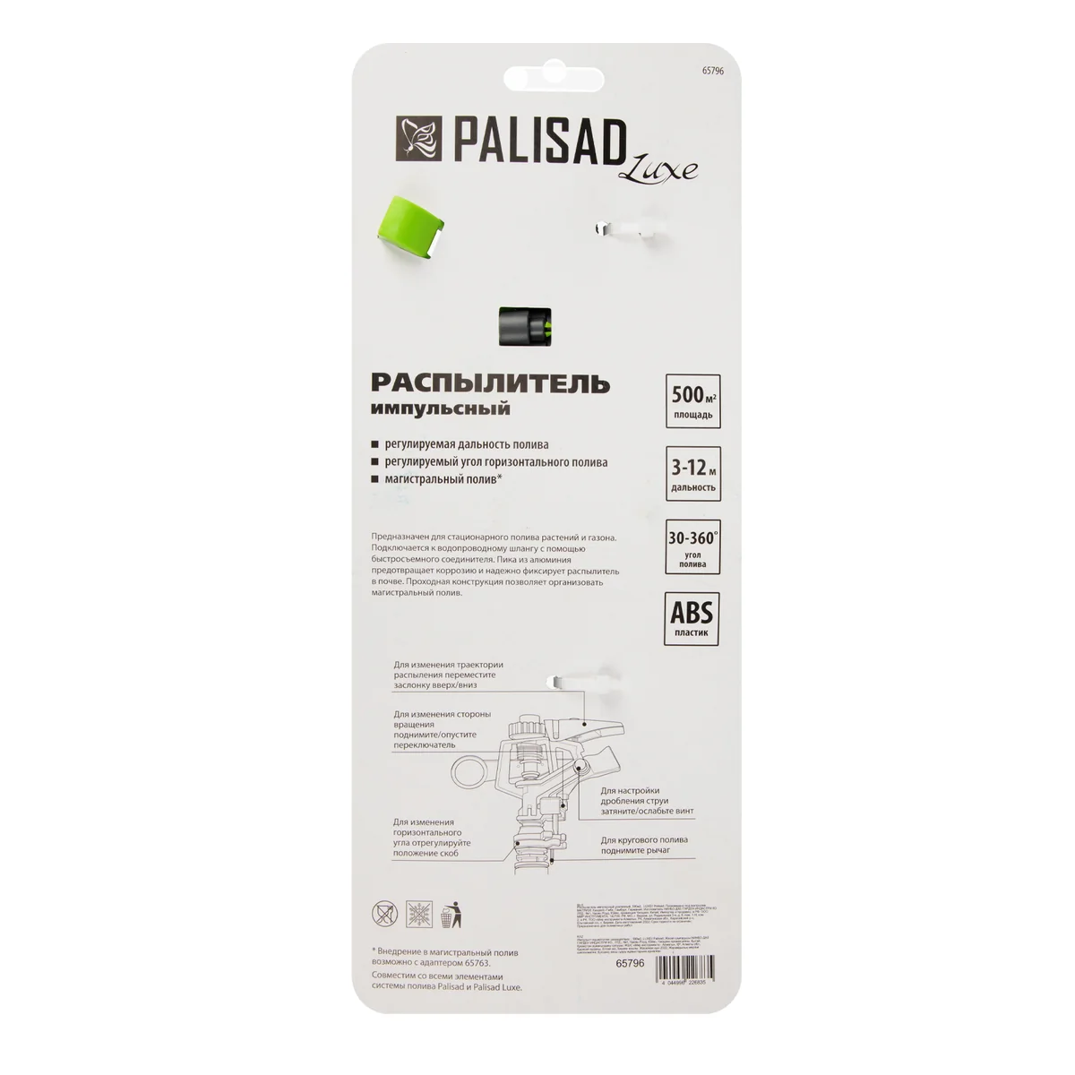 Разбрызгиватель усиленный, импульсный, с регулировкой угла горизонт распыления до 39 м Palisad 65796