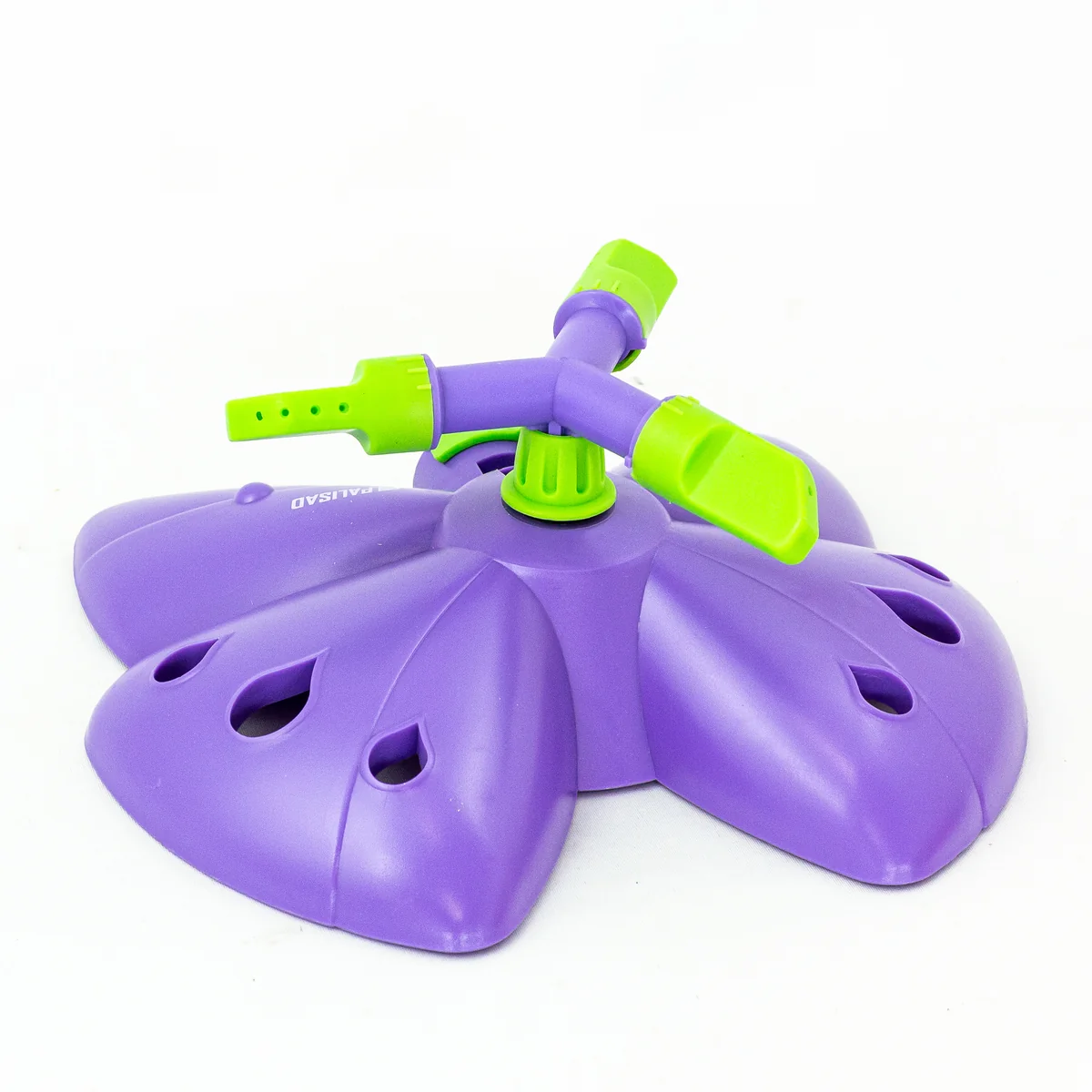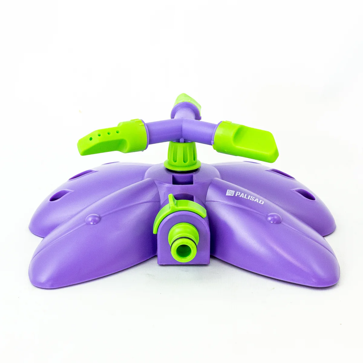 Вращающийся разбрызгиватель Palisad «Бабочка» с 3 лопастями, с регулировкой, используется для орошения газонов и садовых участков. Максимальная площадь полива составляет 58 кв.м. Дальность распыления можно варьировать от 2 до 4,3 м. На каждой лопасти 4 отверстия, обеспечивающие равномерный полив. Основание выполнено в форме бабочки, что придает устройству оригинальный вид.
