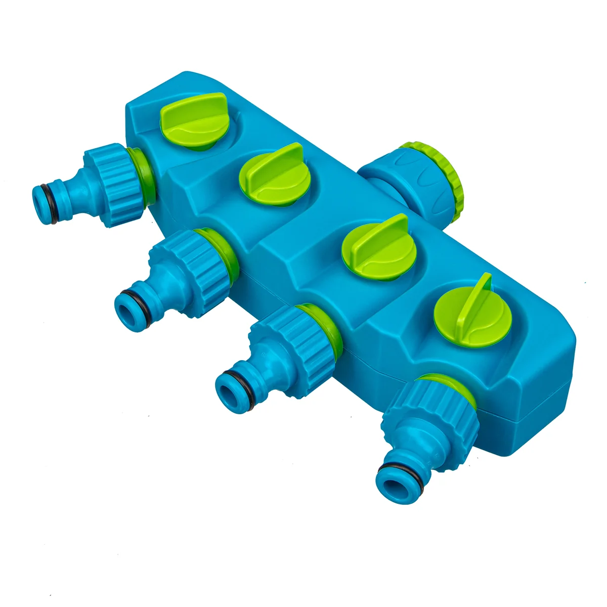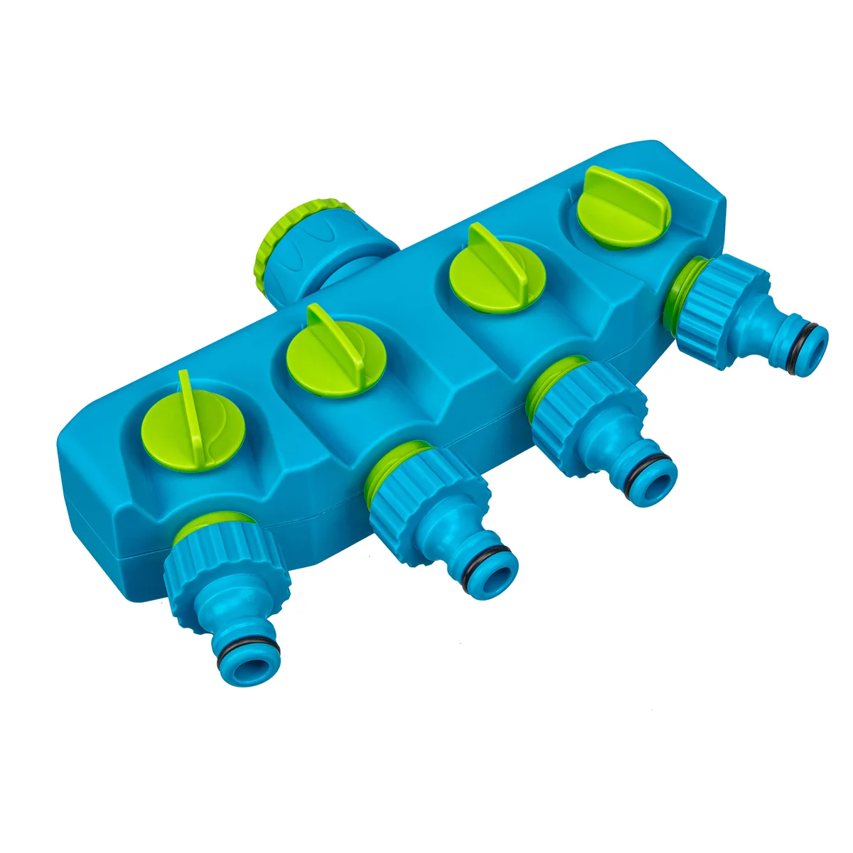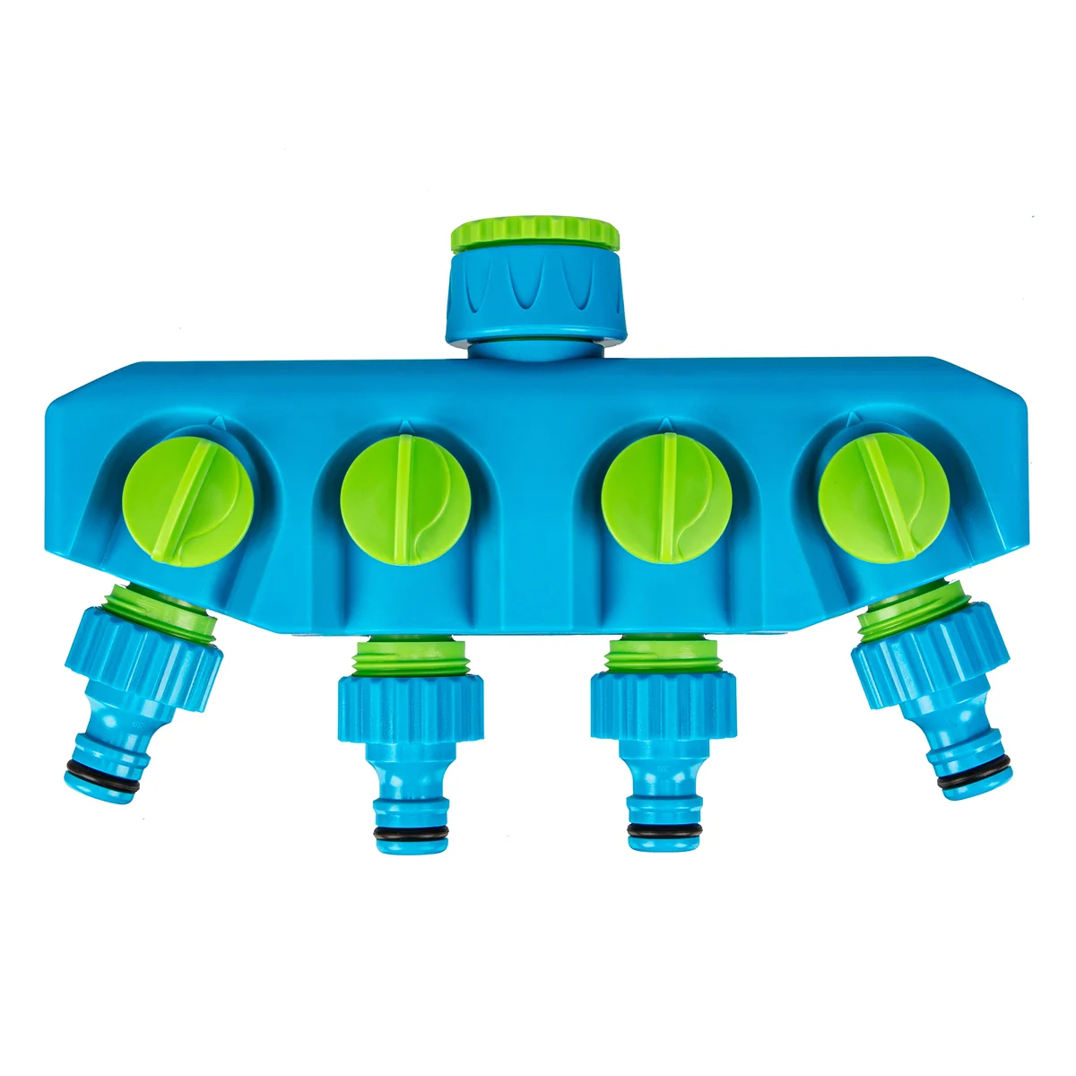 Четырехканальный пластиковый разветвитель Palisad LUXE 65787 с внутренней резьбой 3/4""-1"" позволяет разделить водоразборную магистраль на 4 линии, значительно увеличив площадь полива. Монтируется на кран или отвод с внешней резьбой. Пригодится для организации системы полива на дачном участке.ПреимуществаДолговечность — аксессуар из ударопрочного ABS-пластика устойчив к повреждениям и не боится коррозии.Простой монтаж — на каждом отводе имеется вращающийся фиксатор, позволяющий быстро закрепить или снять шланг.Надежность — разветвитель выдерживает давление водного потока и образует прочные соединения без протечек.