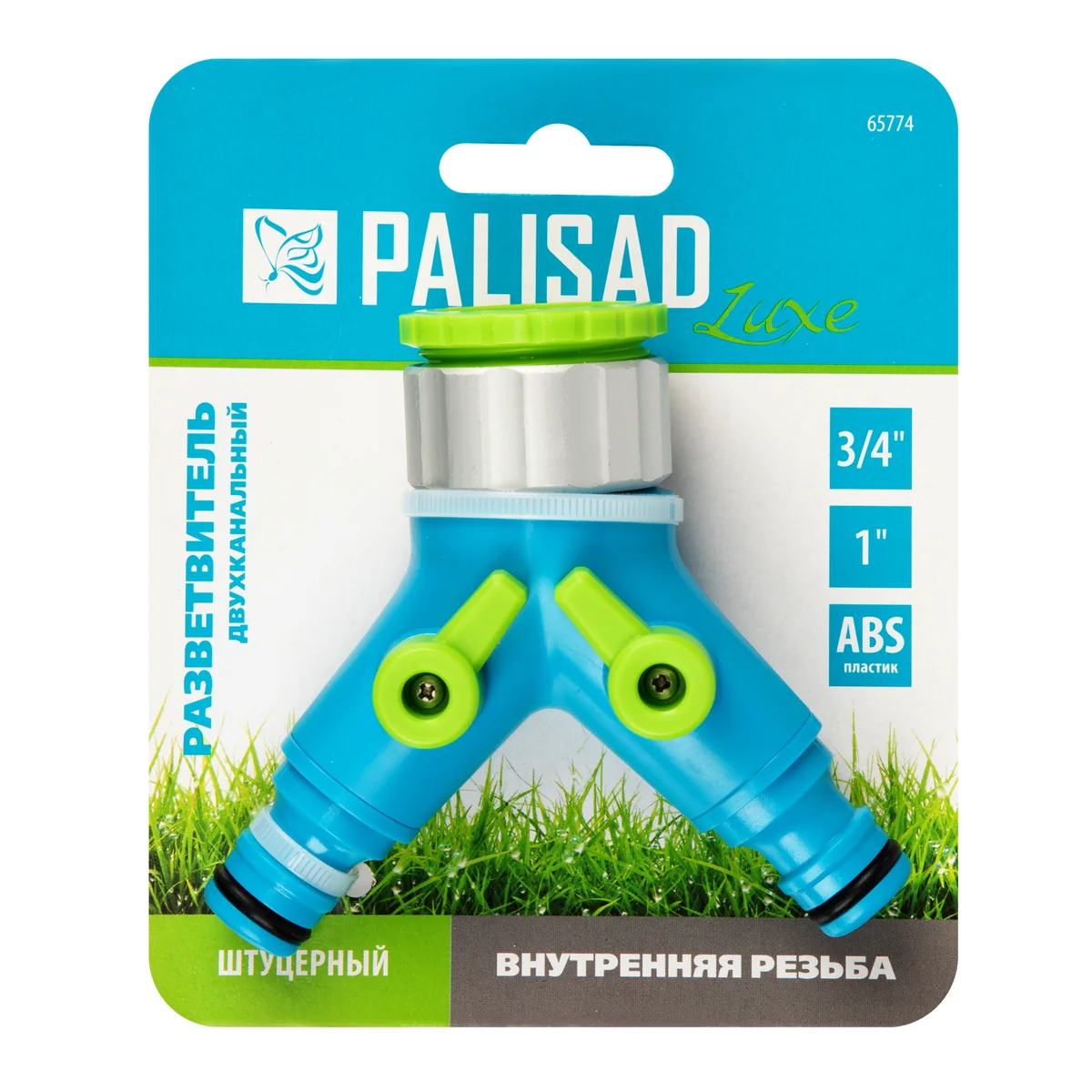 Двухканальный разветвитель Palisad LUXE 65774 с внутренней резьбой 3/4""-1"", с переключателем, служит для подключения двух магистралей к источнику водоснабжения, имеющему кран или отвод с внешней резьбой. Аксессуар позволяет охватить значительную площадь полива при монтаже системы орошения на дачном участке.ПреимуществаДолговечность — разветвитель выполнен из ударопрочного ABS-пластика, переключатель покрыт термопластичной резиной, устойчивой к воздействию климатических факторов.Универсальность — со стороны адаптера имеется переходник, позволяющий подключать разветвитель к кранам и отводам диаметром 3/4"" или 1"".Функциональность — переключатель обеспечивает работу одной из двух либо обеих линий одновременно, а также полностью прекращает подачу воды.