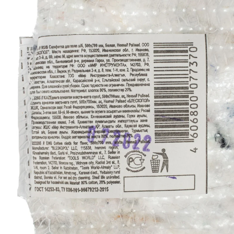 Салфетка для пола хлопчатобумажная применяется для широкого спектра хозяйственных работ.Подходит для уборки всех типов покрытий: паркетных, ламинатных, деревянных и т.д.Изготовлена из прочного и долговечного хлопчатобумажного волокна.Преимущества:Прекрасно впитывает влагу.Подходит для многократного применения.