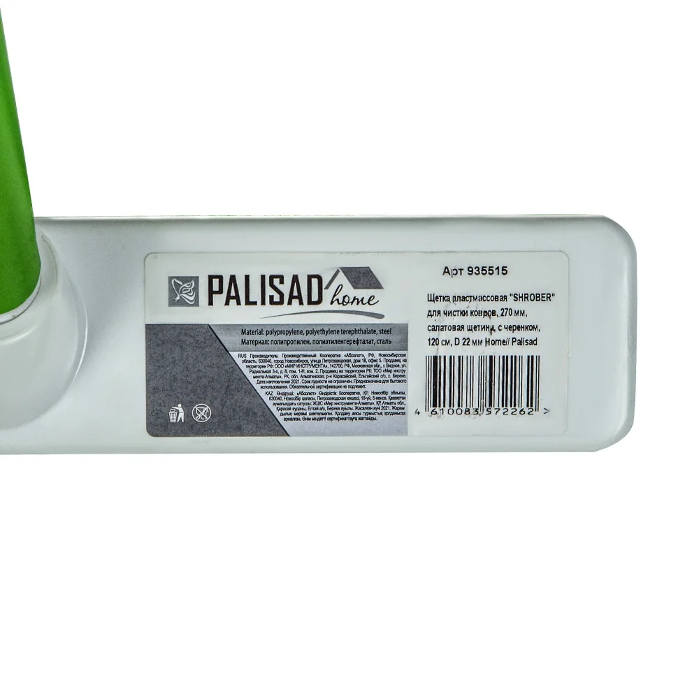 Щетка пластмассовая для чистки ковров, 27 cм, c черенком, 120 см, салатовая щетина, Home Palisad 935515