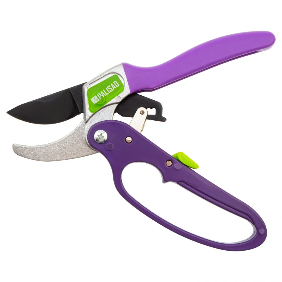 Секатор прямого реза, 200 мм, храповой механизм, металлические обрезиненные рукоятки, Palisad 60488