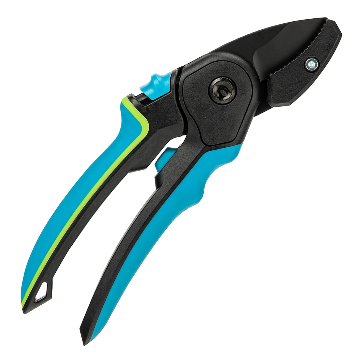 - Опорная наковальня с зубчатой поверхностью облегчает захват и фиксацию веток, в том числе гладких.