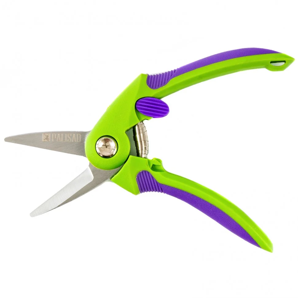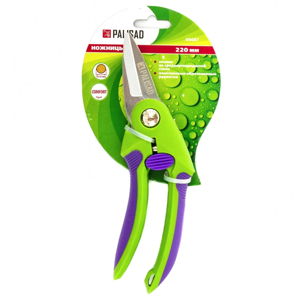 Цветочный секатор Palisad 60487 длиной 220 мм, с двухкомпонентными рукоятками, — садовый инвентарь для срезания молодых побегов и стеблей диаметром до 10 мм, а также оформления топиарных скульптур и крон бонсай. Срез получается ровным и чистым, поскольку лезвия движутся в параллельных плоскостях. Секатор может использоваться для разрезания картона, ткани, бумаги, подвязочного материала. Будет полезен дома и на даче.ПреимуществаПрочность — лезвия изготовлены из высокоуглеродистой стали.Высокий ресурс — лезвия прошли индукционную закалку, а режущие кромки остро заточены.Коррозионная стойкость — на рабочие поверхности нанесено хромированное покрытие.Возможность подгонки лезвий — регулировочный винт позволяет изменять плотность их смыкания.Долговечность — рукоятки из полипропилена устойчивы к воздействию ультрафиолета.Комфорт во время работы — рукоятки обрезинены и не выскальзывают из ладони.