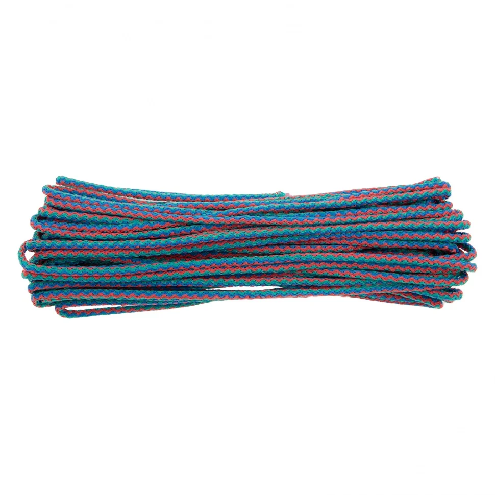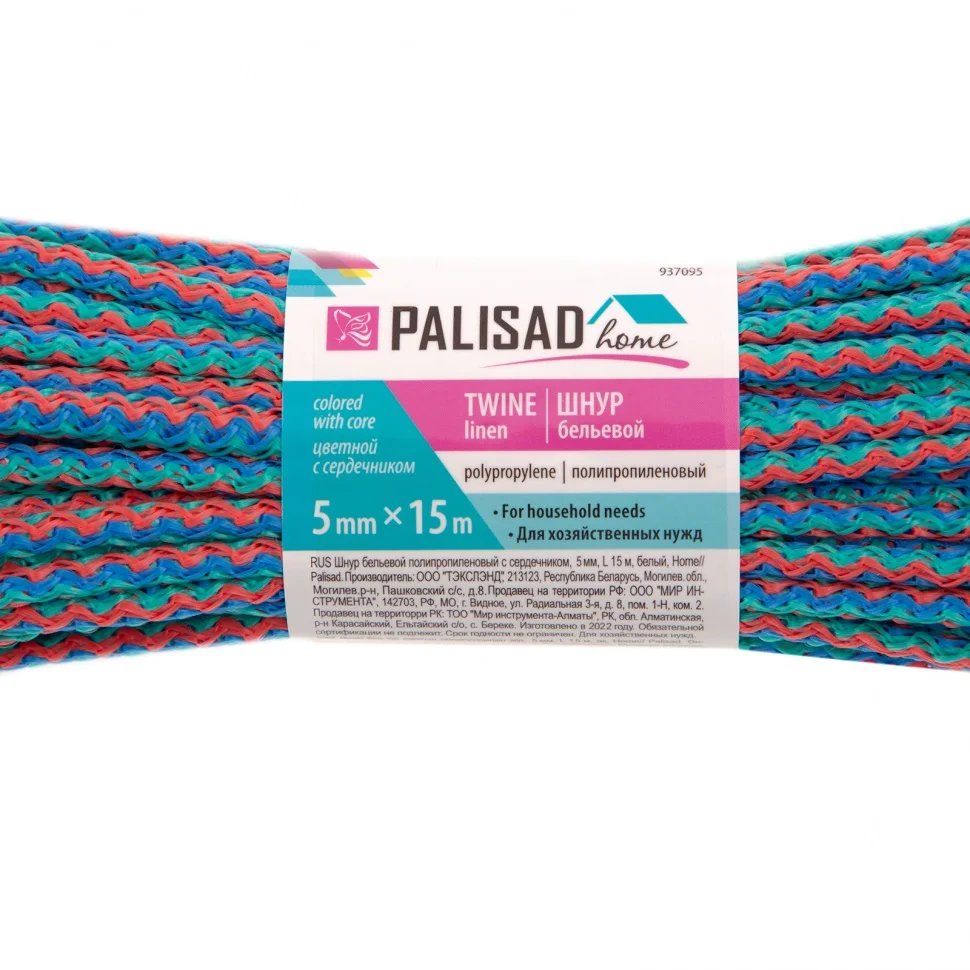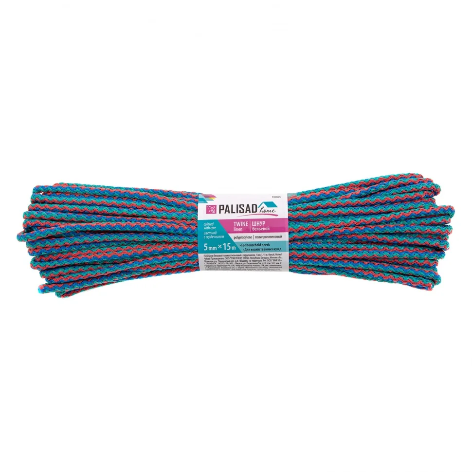 Цветной полипропиленовый бельевой шнур Palisad Home 937095 с сердечником, диаметром 5 мм и длиной 15 м, используется для сушки белья, а также в качестве хозяйственной веревки в быту, на рыбалке или в походе. От обычной бельевой веревки для сушки он отличается сердечником из полипропилена, увеличивающим стойкость к нагрузкам. Шнур с полипропиленовой оплеткой выдерживает разрывную нагрузку до 70 кгс, устойчив к растяжению и не провисает под весом мокрых вещей.ПреимуществаШнур изготовлен из полипропилена, не гниет и не разрушается под действием агрессивных сред, что увеличивает срок его службы.Изделие устойчиво к износу, выдерживает многократное изгибание, поэтому рассчитано на длительное использование.Веревка для белья из полипропилена с сердечником устойчива к температурным перепадам, поэтому ее можно использовать как в помещении, так и под открытым небом.Благодаря мягкости и эластичности бельевой трос легко завязывать узлом.